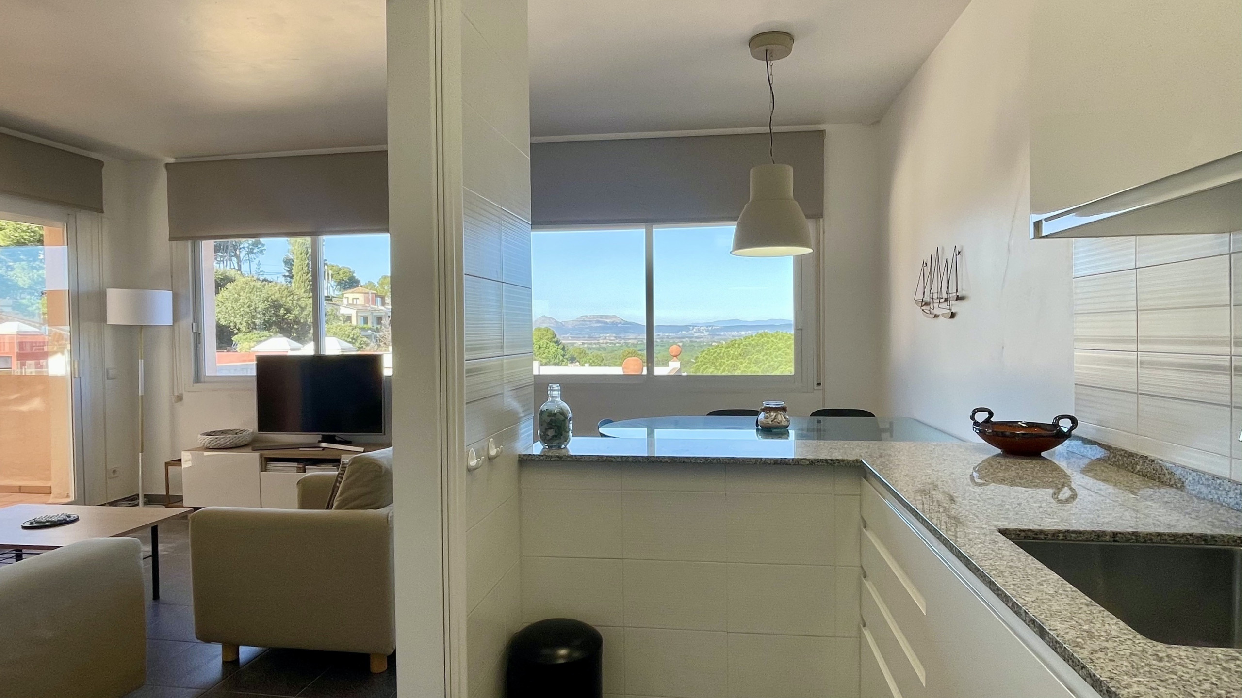 El apartamento, renovado con un amor meticuloso, acoge 2 habitaciones dobles, albergando sueños para 4 almas, con un baño que es un oasis de serenidad. La cocina, dotada del encanto de una taberna mediterránea, se abre hacia la sala de estar, un balcón al mar, con vistas magníficas que acarician las olas, las Islas Medes y el castillo del Montgrí.