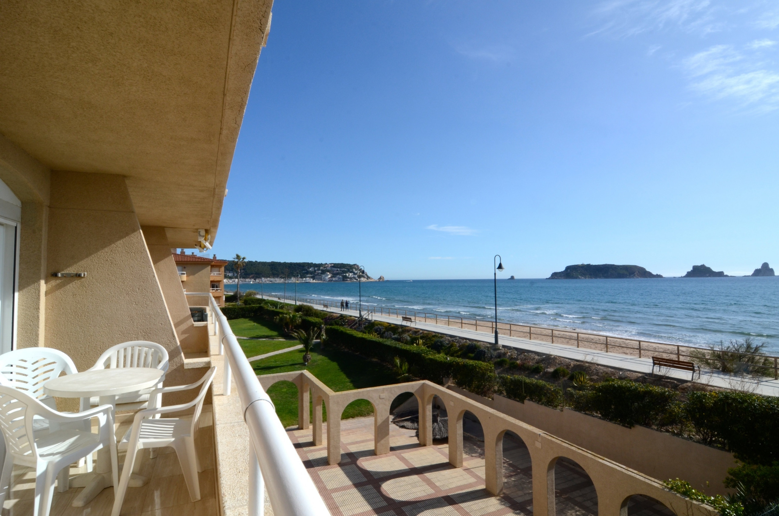 Date un chapuzón en la piscina comunitaria, luego escucha el canto de la brisa marina en un paseo de 25 metros hasta la playa de arena de Els Griells y sumérgete en las aguas cristalinas del Mediterráneo.