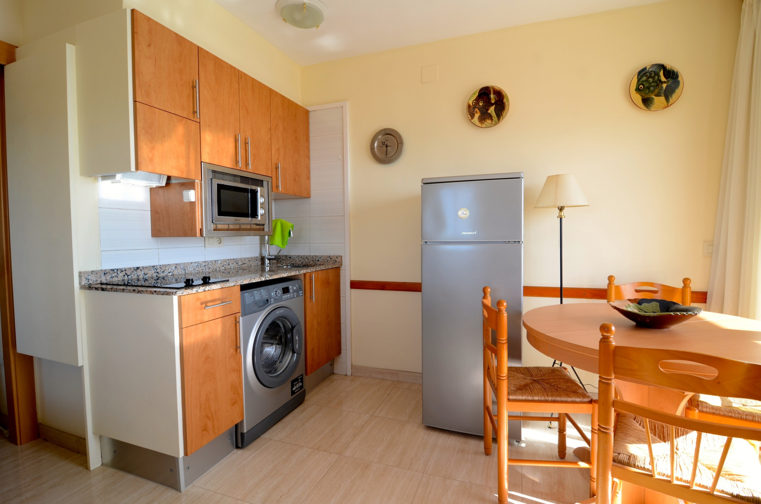En la cocina americana, de vitrocerámica, las comodidades incluyen frigorífico, microondas, horno, lavadora, vajilla/cubertería, utensilios/cocina, cafetera, tostadora y exprimidor. Las sábanas están incluidas en el precio y tienes la opción de añadir toallas a tu reserva por un suplemento de 5€ por persona.