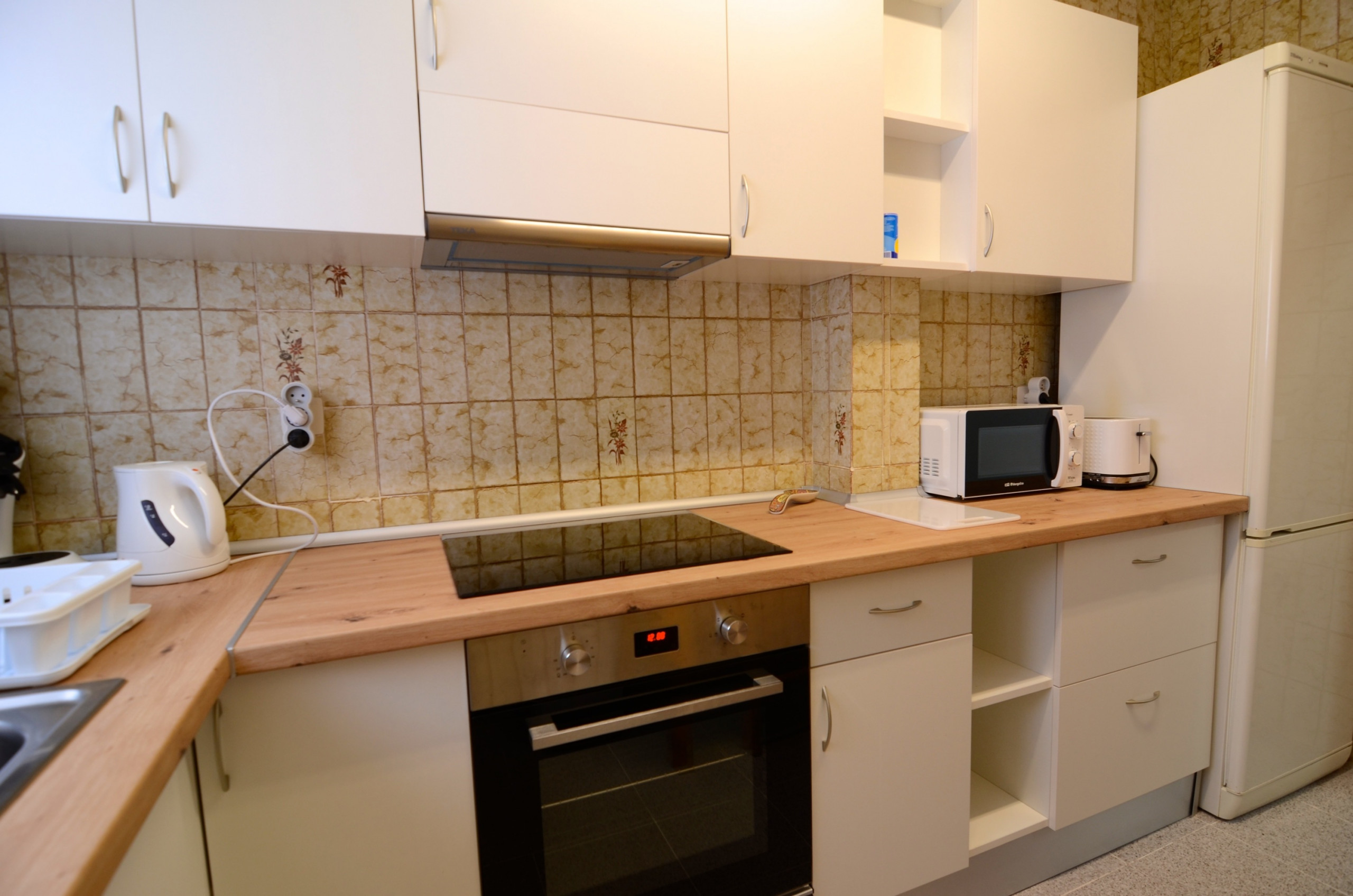 La cocina independiente cuenta con vitrocerámica, frigorífico, microondas, horno, congelador, vajilla, cubertería, utensilios de cocina, cafetera, tostadora y hervidor de agua.