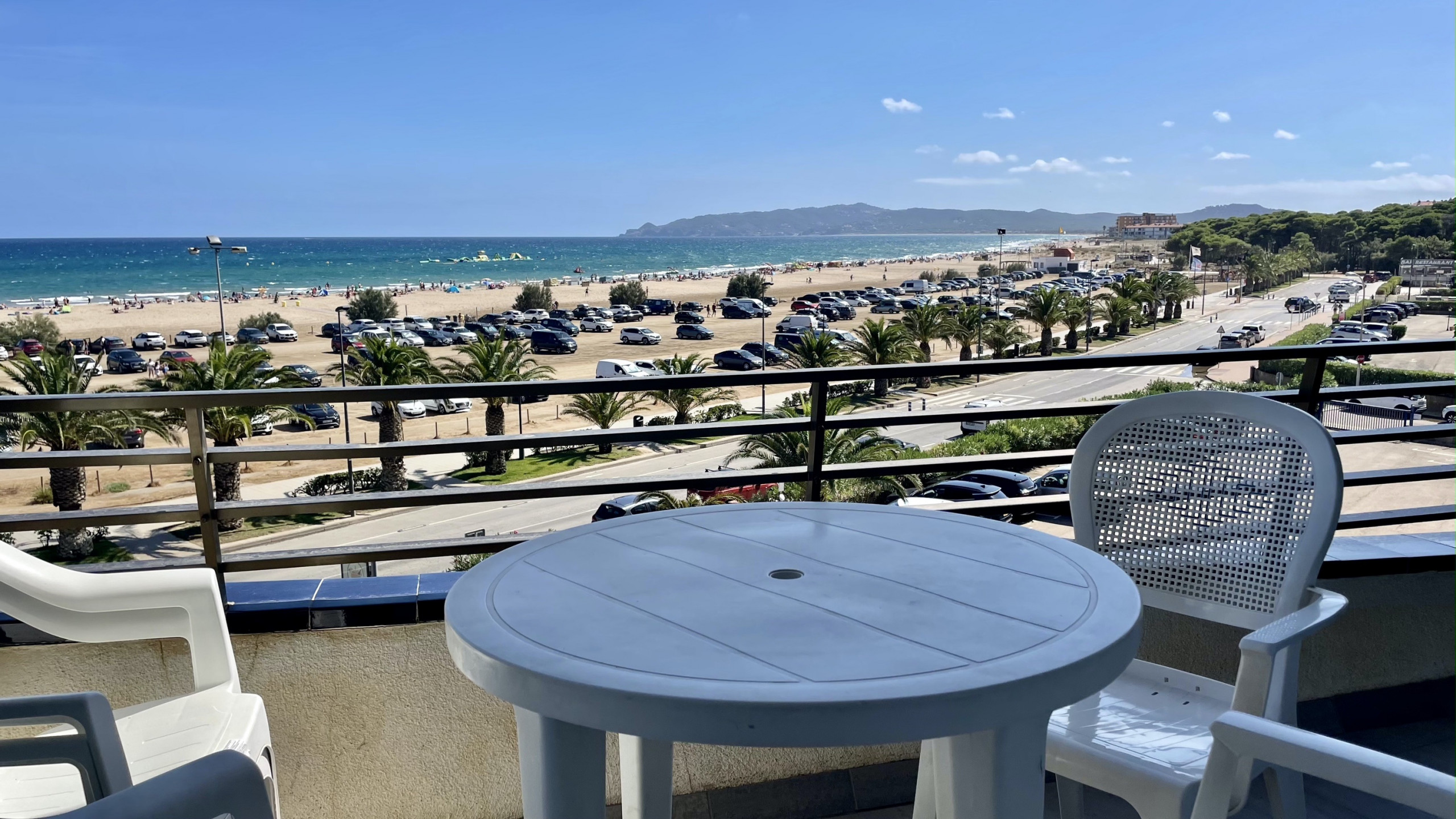 El apartamento tiene una gran terraza con una inmejorable vista del todo el complejo Rocamaura, con la piscina a tus pies y las Islas Medes de fondo.
