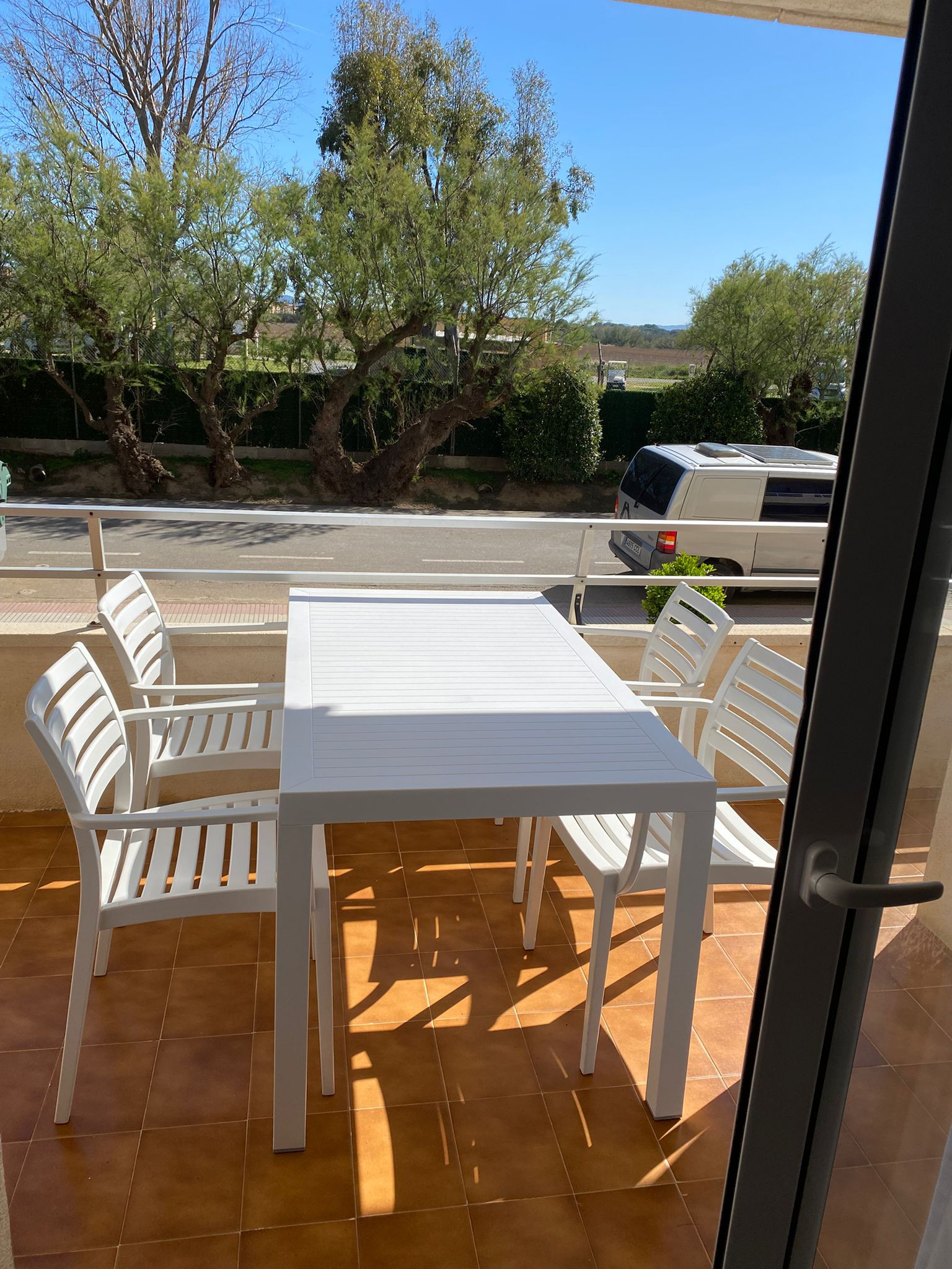 El apartamento tiene una gran terraza con una inmejorable vista del todo el complejo Rocamaura, con la piscina a tus pies y las Islas Medes de fondo.