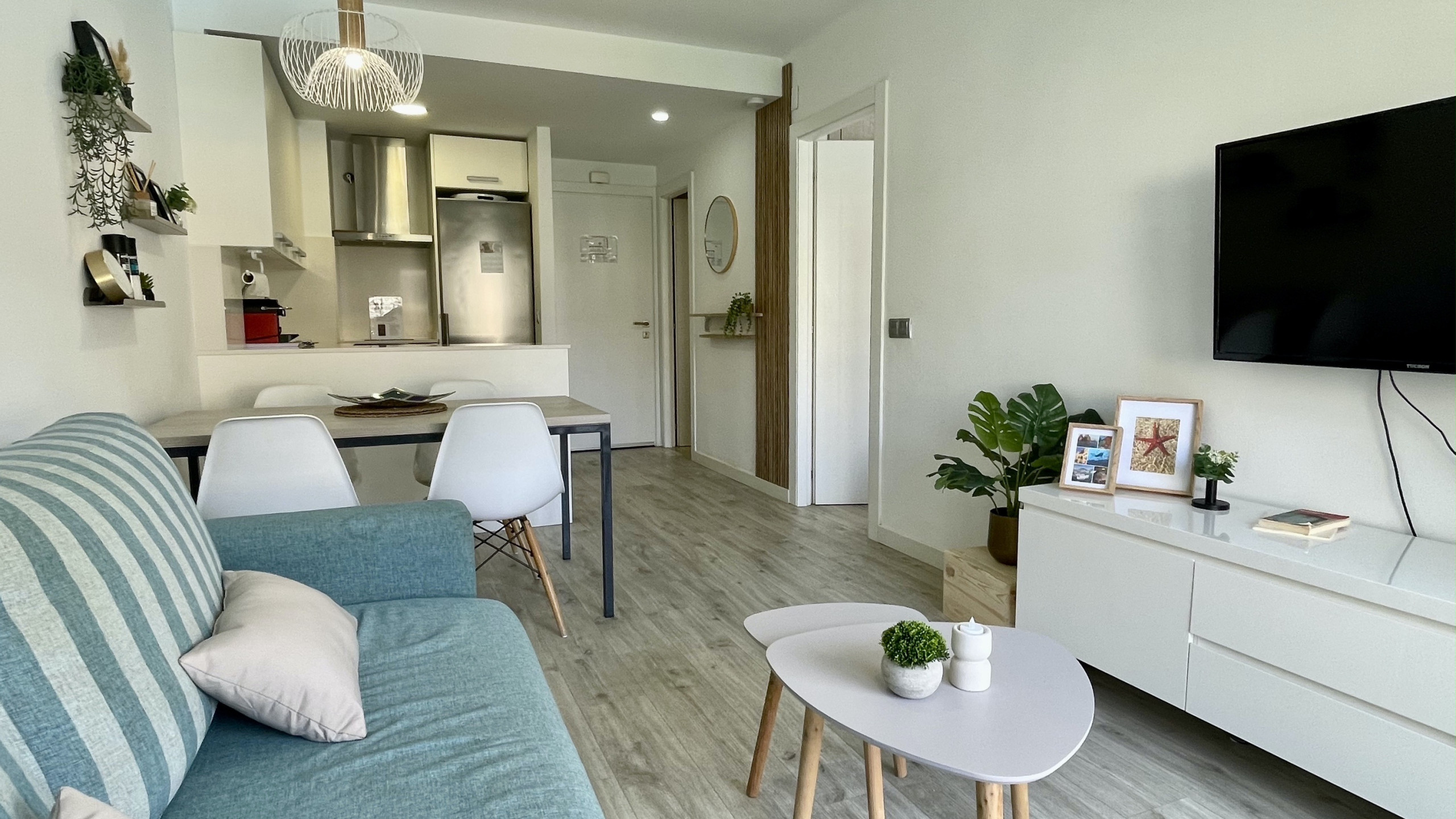 Descubre un acogedor refugio en el corazón de Estartit, perfecto para parejas que buscan una escapada romántica. Este moderno y acogedor apartamento de 34 metros cuadrados ofrece un espacio íntimo y funcional diseñado para un máximo de 4 personas.