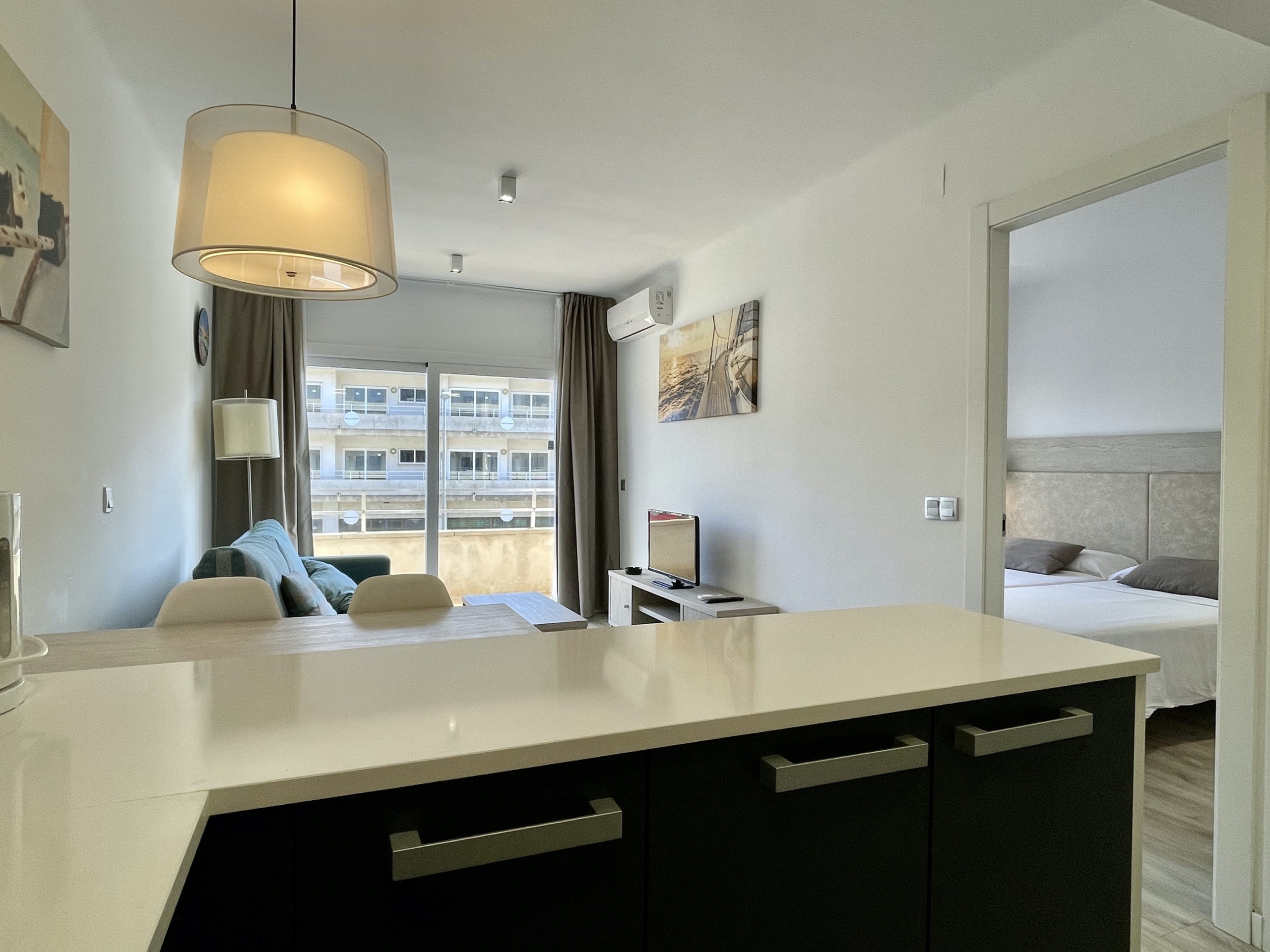 En el complejo Rocamaura se alquila para las vacaciones este apartamento de 1 dormitorio con una litera doble y una cama individual con capacidad para 3 personas.Salón comedor con sofà y TV, pequeña cocina independiente y baño con ducha.