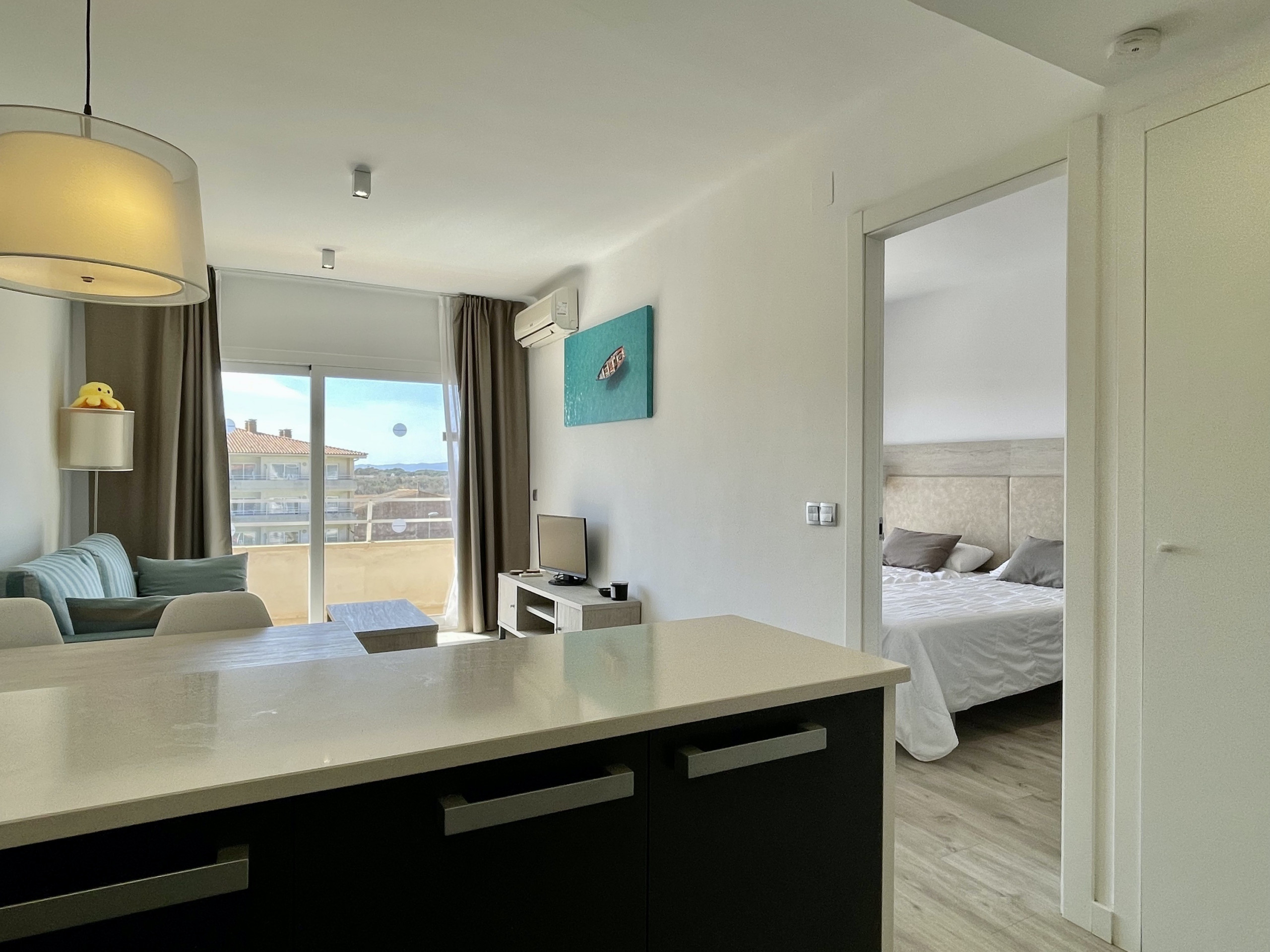 Bienvenido a nuestro moderno apartamento de 1 dormitorio en Estartit, donde podrás alojar cómodamente hasta 4 personas en sus acogedores 40 metros cuadrados. Este encantador piso ofrece vistas a la atractiva piscina y está situado en el corazón de un barrio animado y familiar.