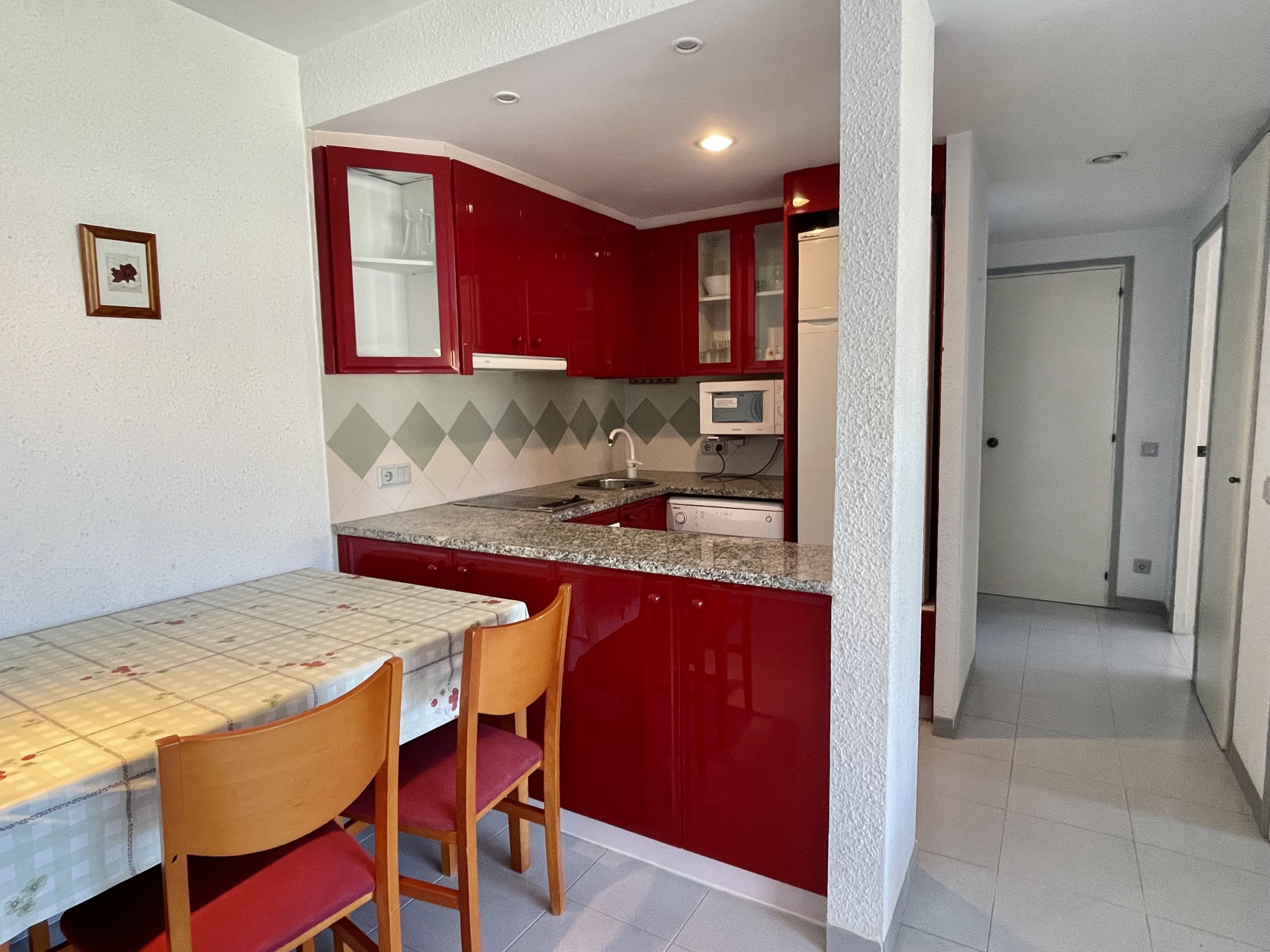 En el complejo Rocamaura se alquila para las vacaciones este apartamento de 1 dormitorio con una litera doble y una cama individual con capacidad para 3 personas.Salón comedor con sofà y TV, pequeña cocina independiente y baño con ducha.