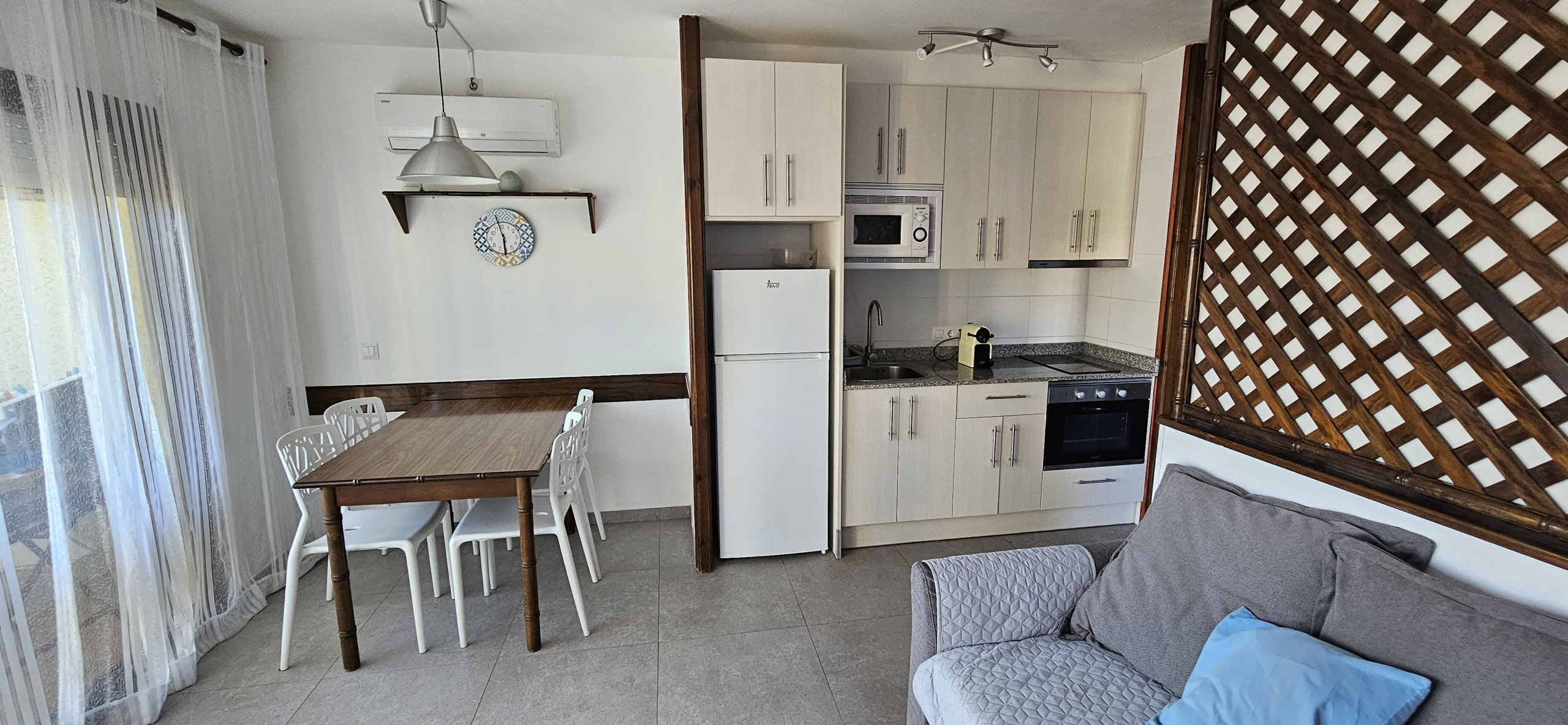 En el complejo Rocamaura se alquila para las vacaciones este apartamento de 1 dormitorio con una litera doble y una cama individual con capacidad para 3 personas.Salón comedor con sofà y TV, pequeña cocina independiente y baño con ducha.