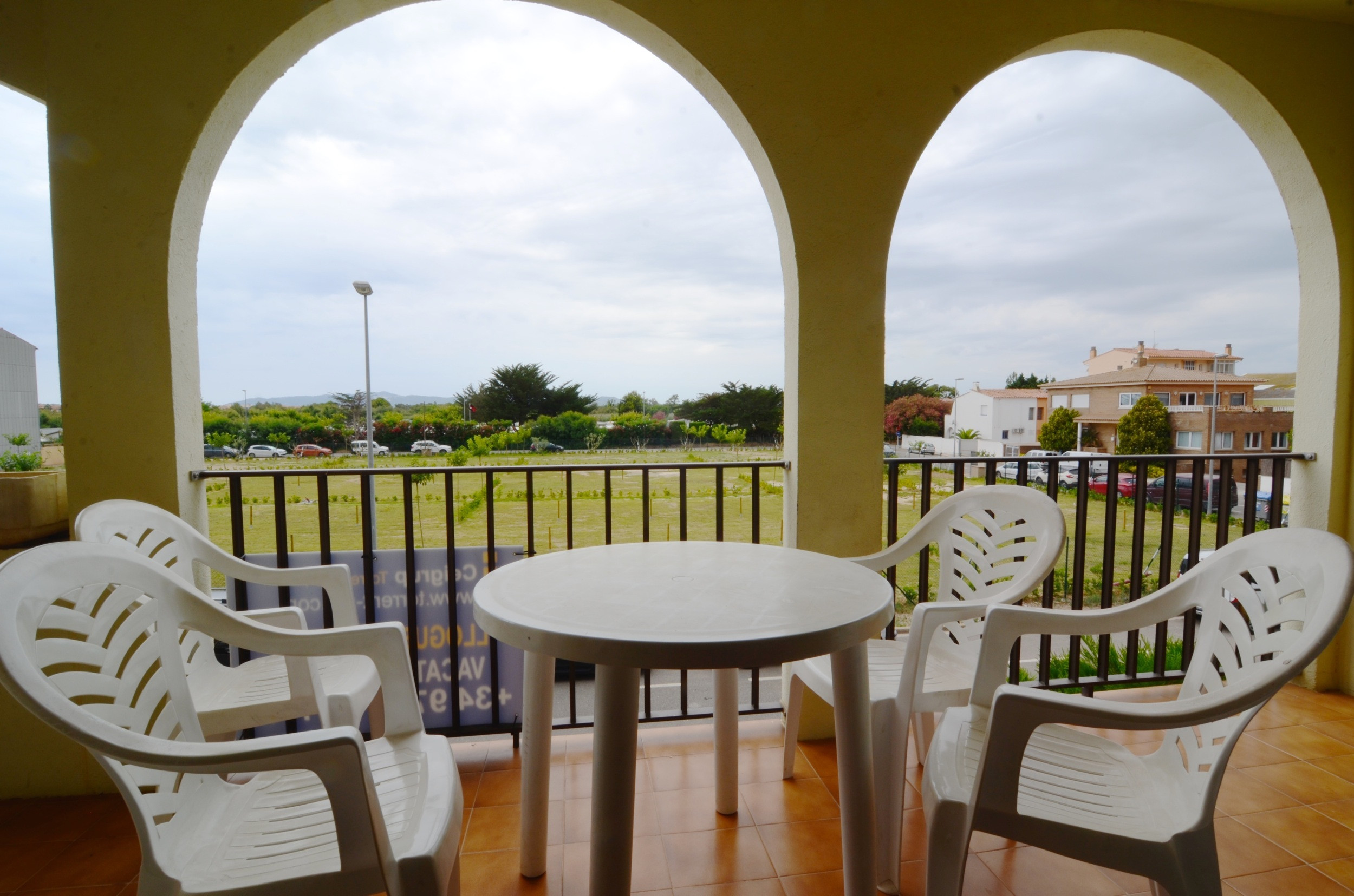 El apartamento tiene una gran terraza con una inmejorable vista del todo el complejo Rocamaura, con la piscina a tus pies y las Islas Medes de fondo.