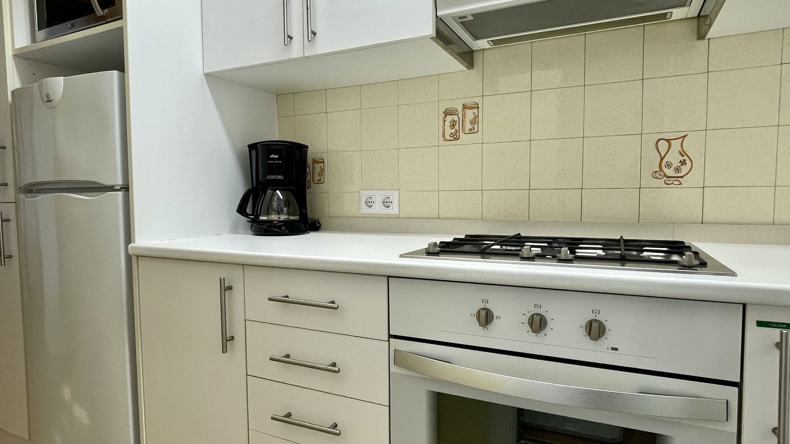 La cocina abierta a gas añade un toque de comodidad, con horno, nevera/congelador, cafetera, tostadora y vajilla, cubertería y utensilios de cocina completos.