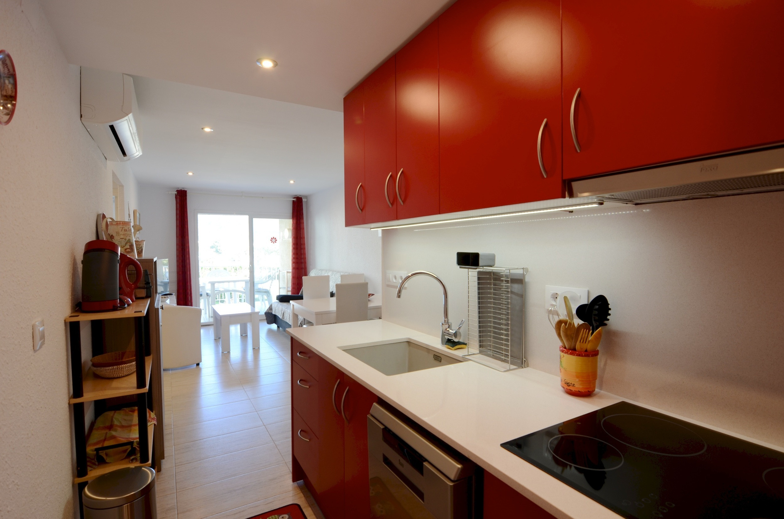 Descubre la comodidad de nuestro apartamento de dos habitaciones en el complejo Rocamaura de l'Estartit. Este espacio moderno y luminoso ha sido completamente renovado para brindar un ambiente elegante para su estadía. La cocina abierta se conecta perfectamente con la sala de estar, creando un ambiente acogedor.