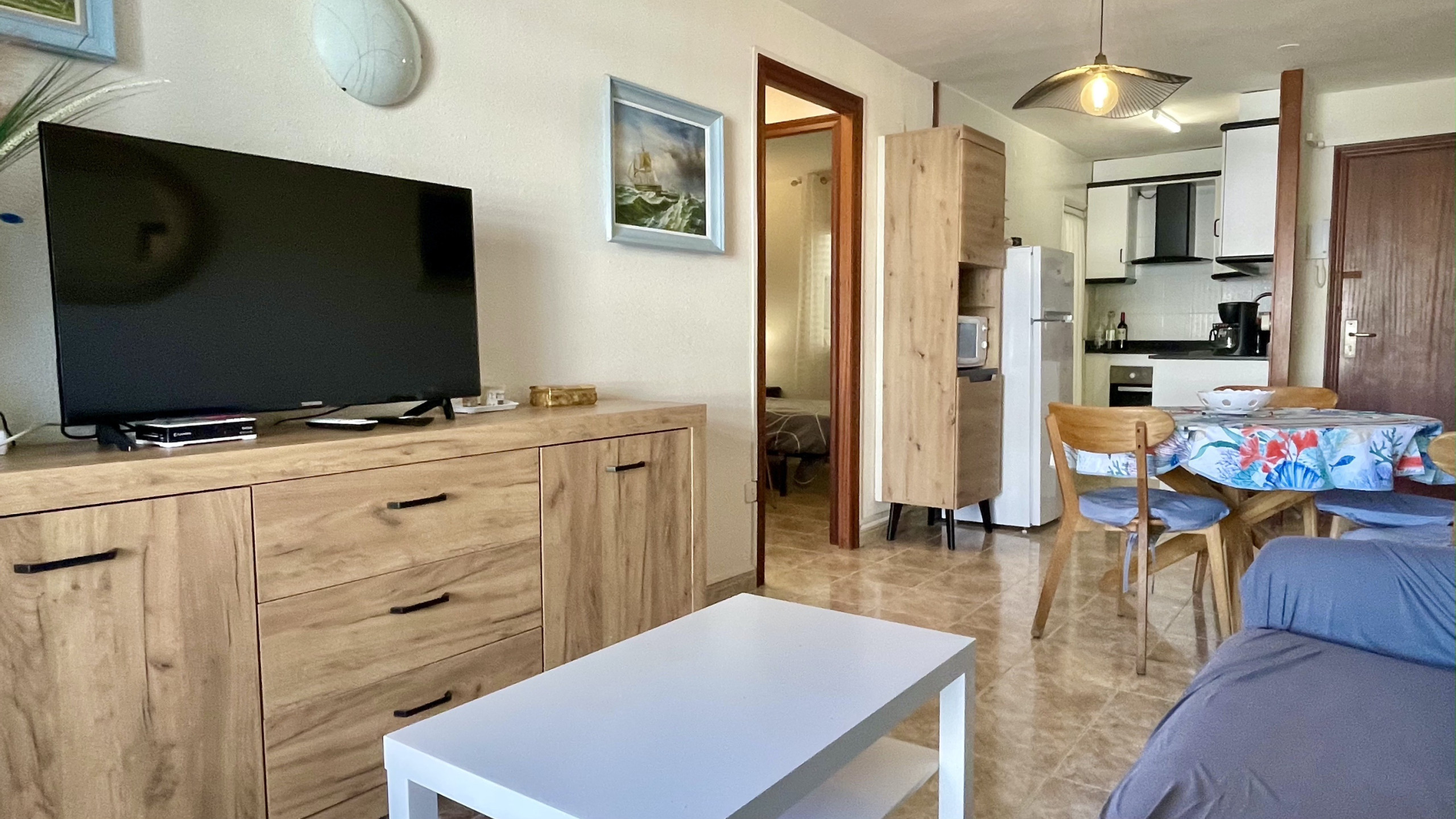 En el complejo Rocamaura se alquila para las vacaciones este apartamento de 1 dormitorio con una litera doble y una cama individual con capacidad para 3 personas.Salón comedor con sofà y TV, pequeña cocina independiente y baño con ducha.