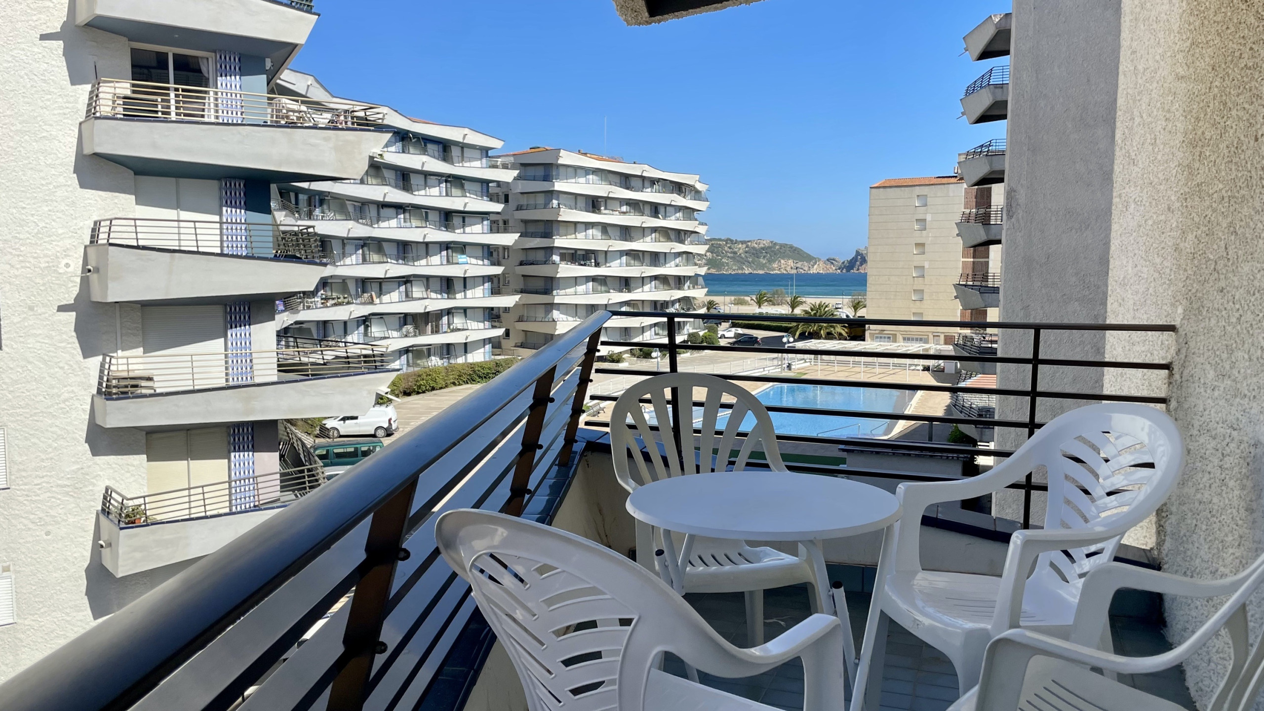 Date un chapuzón en la piscina comunitaria, luego escucha el canto de la brisa marina en un paseo de 25 metros hasta la playa de arena de Els Griells y sumérgete en las aguas cristalinas del Mediterráneo.