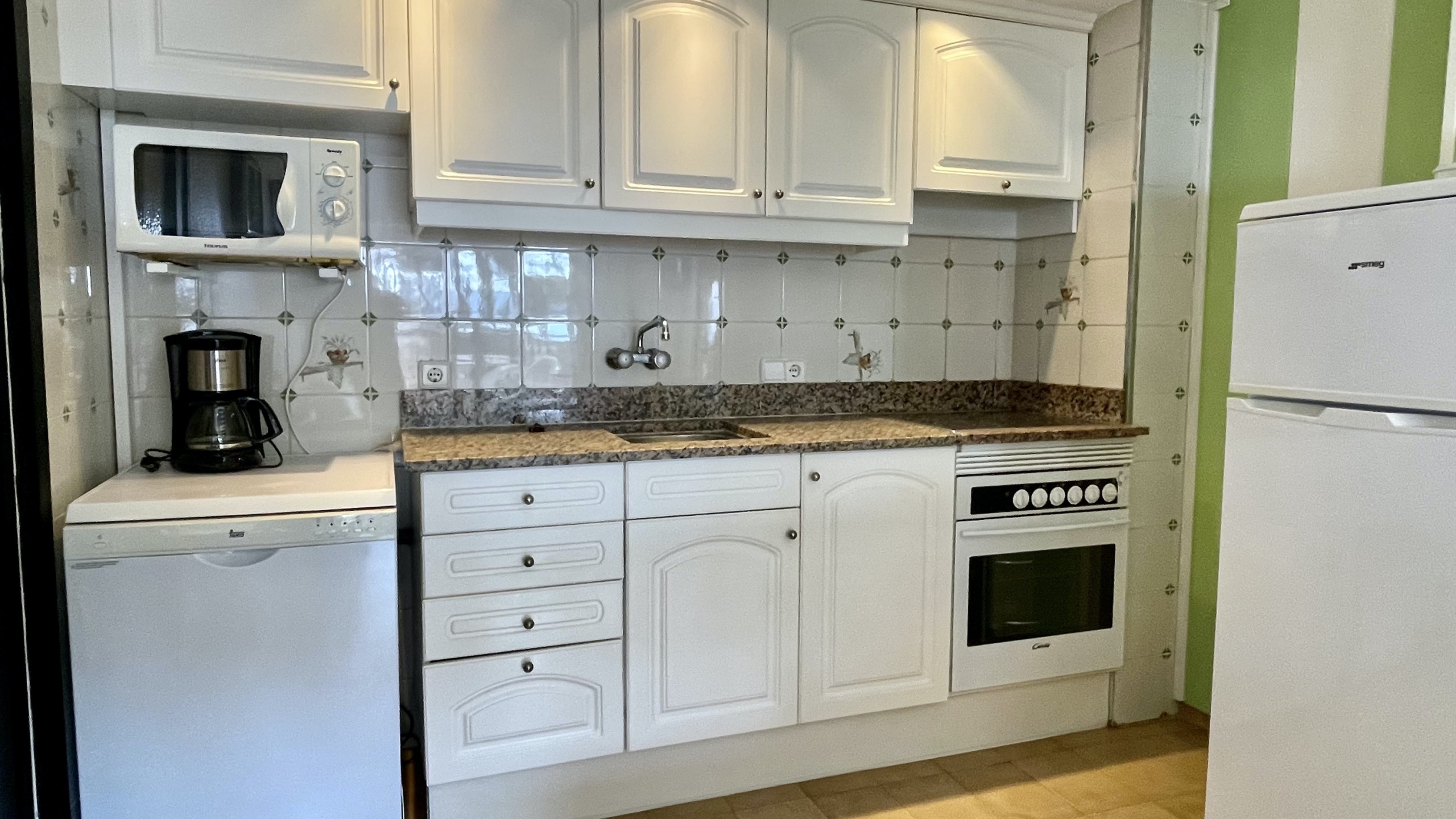 una cocina americana totalmente equipada. Las sabanas estan incluidas y si necesitas toallas puedes alquilarlas por 5 euros/persona.