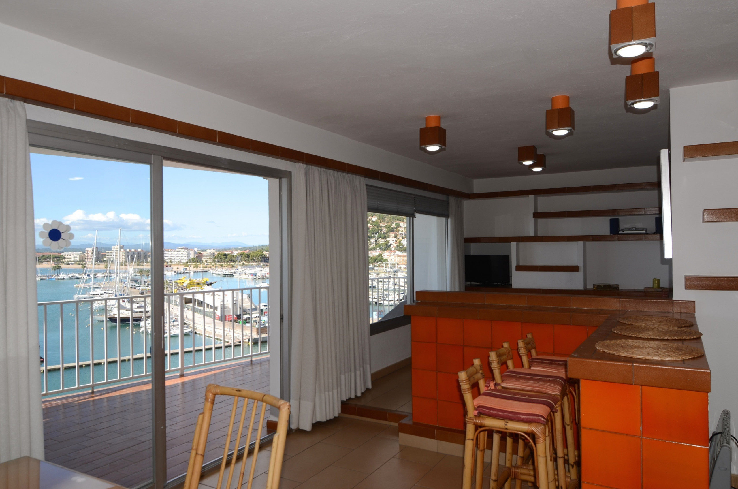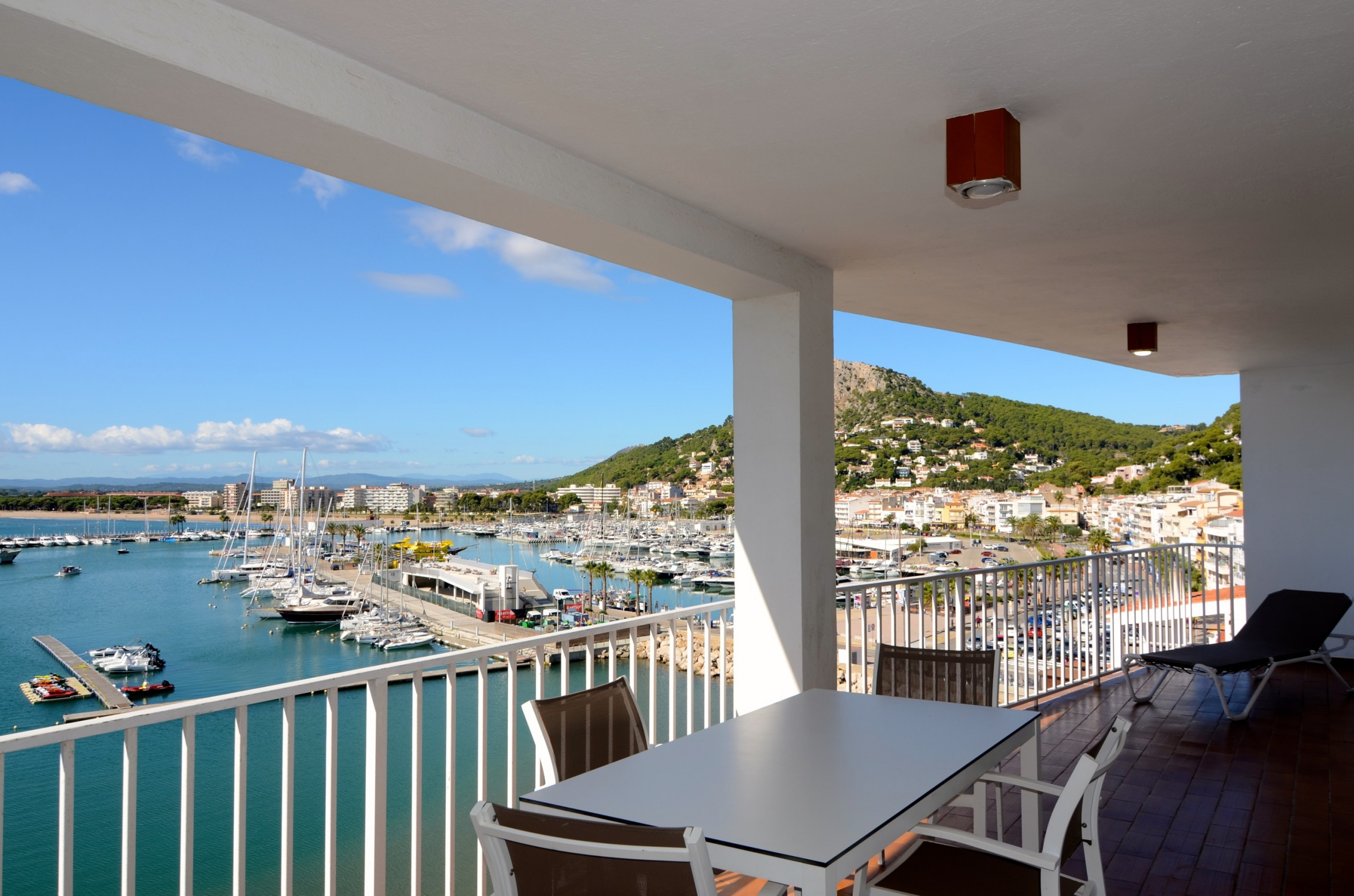 El apartamento tiene una gran terraza con una inmejorable vista del todo el complejo Rocamaura, con la piscina a tus pies y las Islas Medes de fondo.