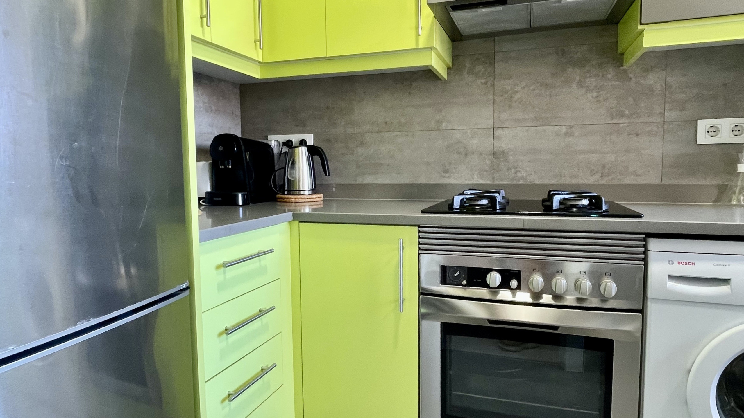 La cocina está totalmente equipada con nevera, microondas, horno, congelador, lavadora, lavavajillas y toda la vajilla, cubertería y utensilios necesarios. Ya sea que esté disfrutando de un tranquilo café matutino o preparando una comida, esta cocina se adapta a sus necesidades.