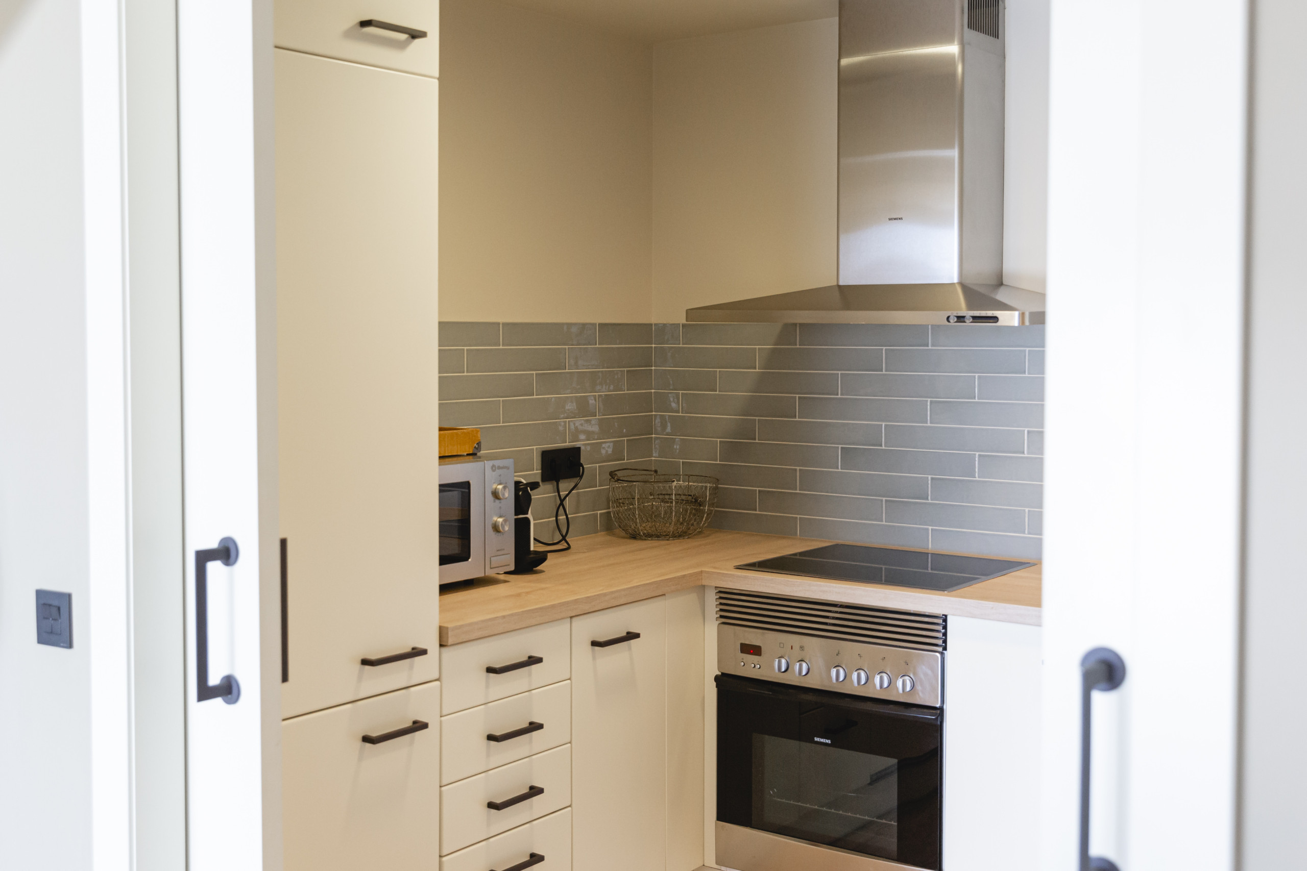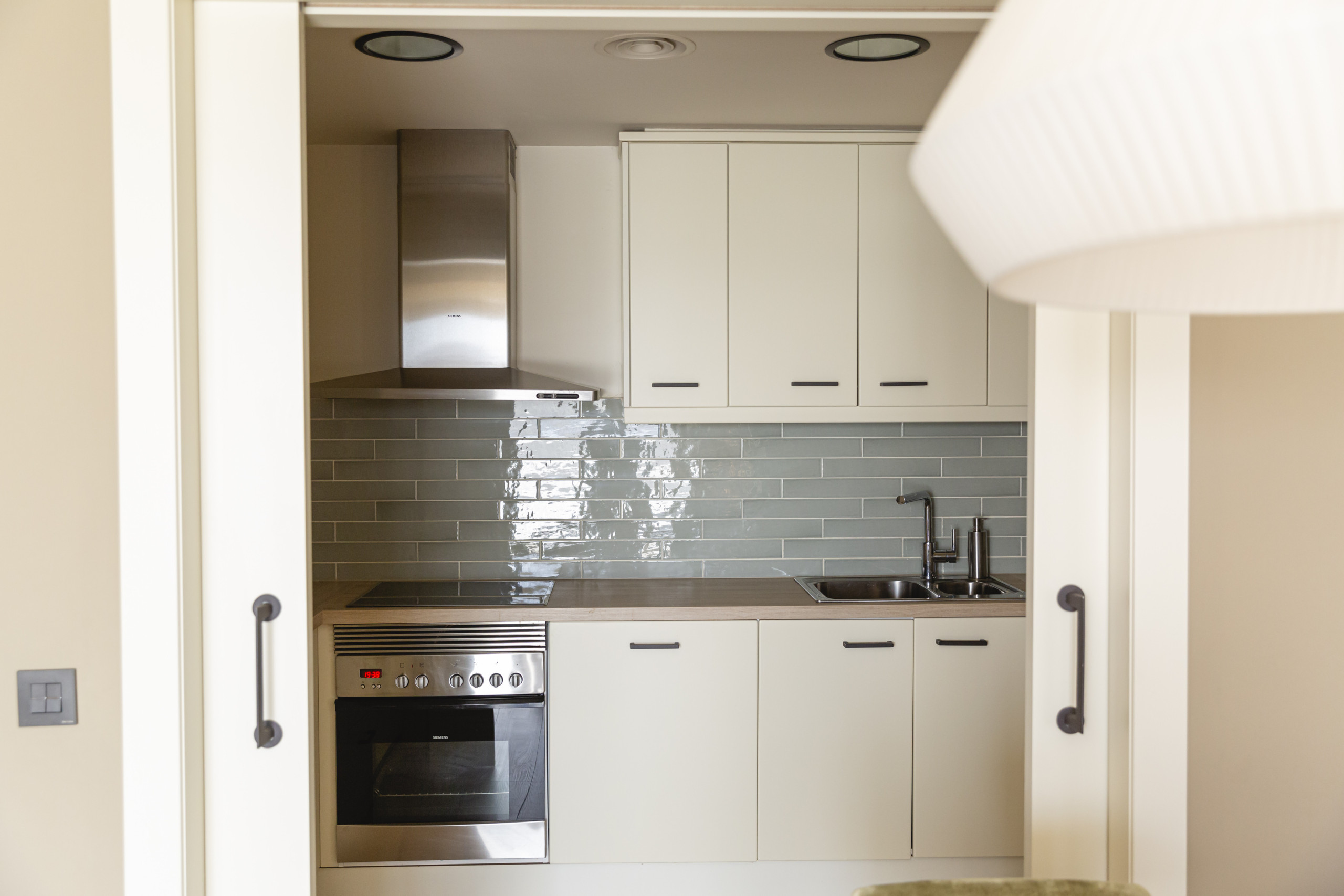 La cocina totalmente equipada te invita a desatar tu talento culinario, con modernos electrodomésticos que incluyen nevera, microondas, horno, congelador, lavadora y lavavajillas, así como utensilios de cocina, cafetera y tostadora para una comodidad sin igual.