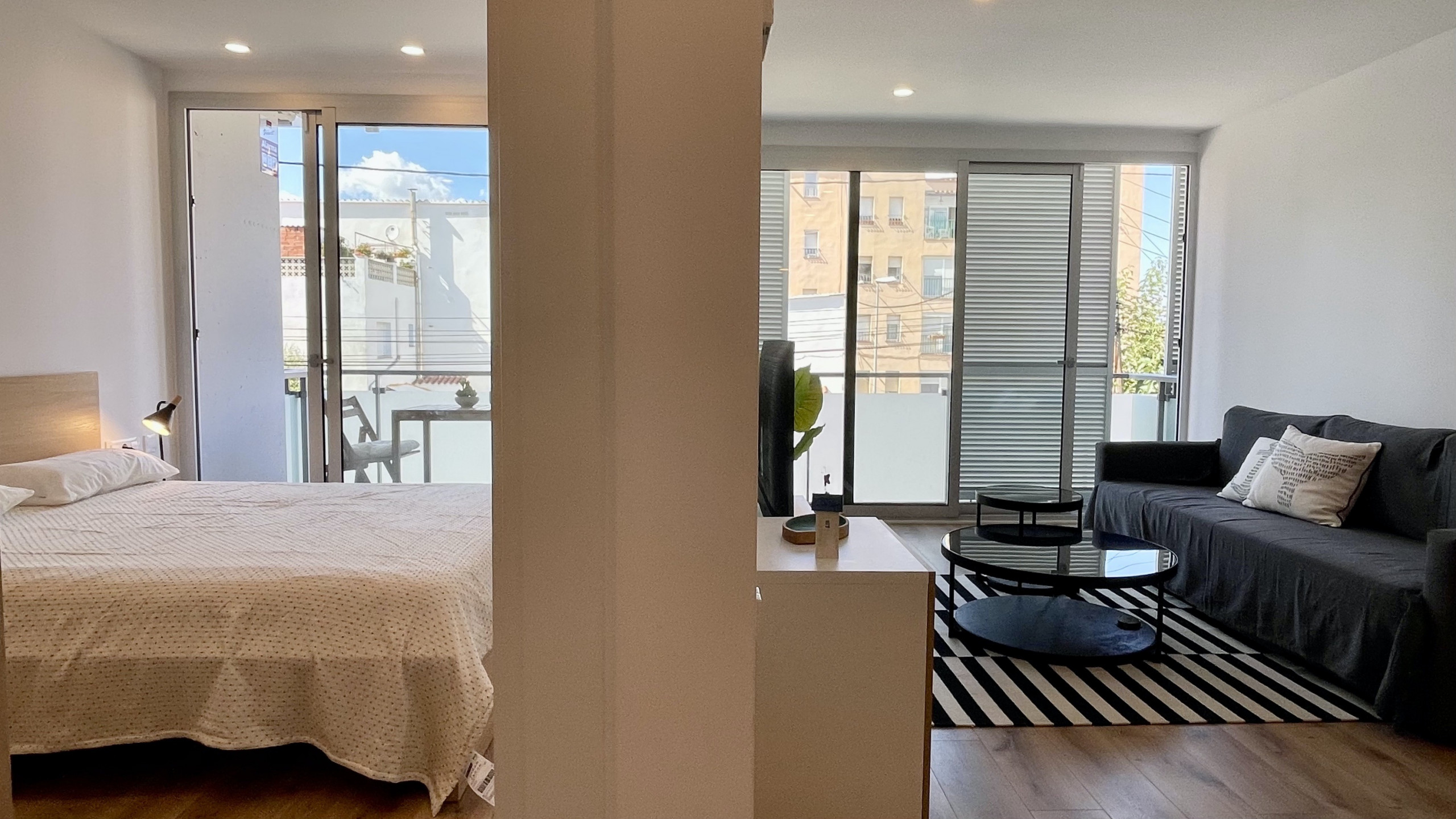 El apartamento cuenta con una habitación equipada con una cama doble y un sofá-cama, ideal para familias o grupos pequeños. La cocina está completamente equipada con electrodomésticos como nevera, lavadora, horno, microondas, cafetera y tostadora, permitiéndote preparar comidas y snacks con facilidad.