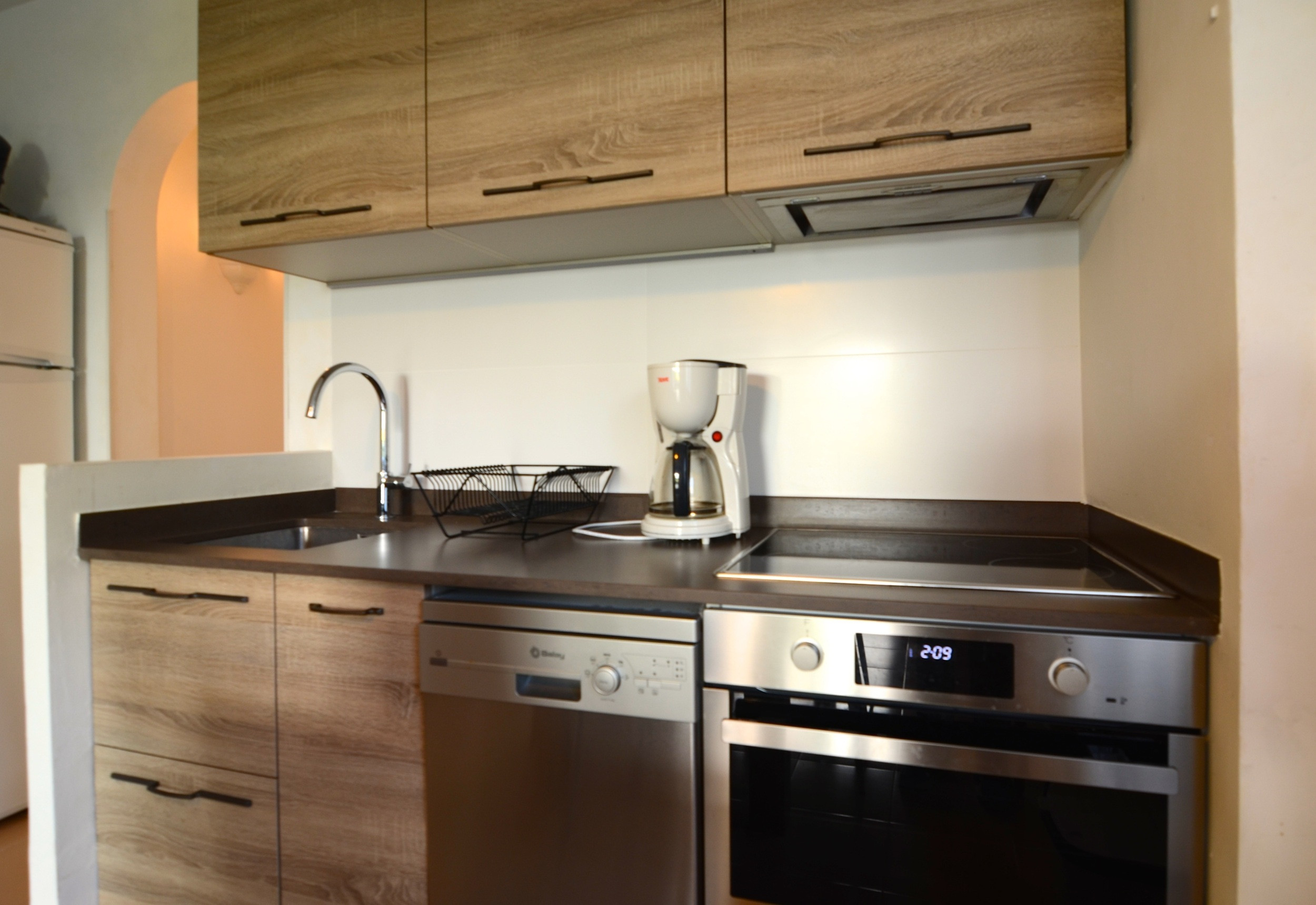 La cocina americana, de vitrocerámica, está equipada con nevera, microondas, lavadora, vajilla/cubertería, utensilios/cocina, cafetera y tostadora.
