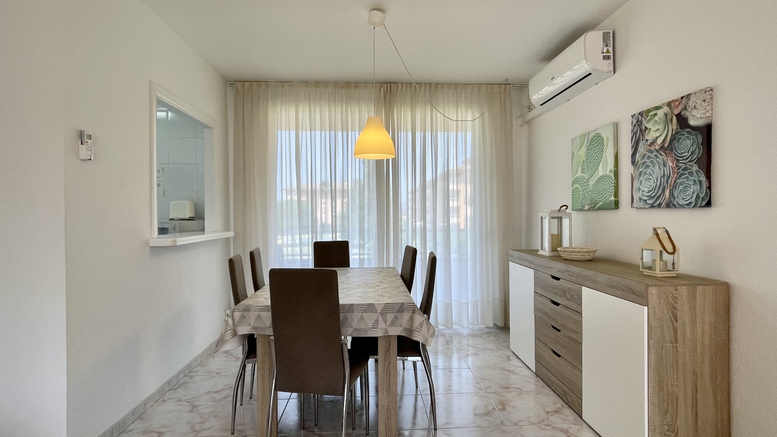 La zona comunitaria con gran jardín, piscina y piscina infantil es un plus a este apartamento, por no decir de la situación a pié de playa