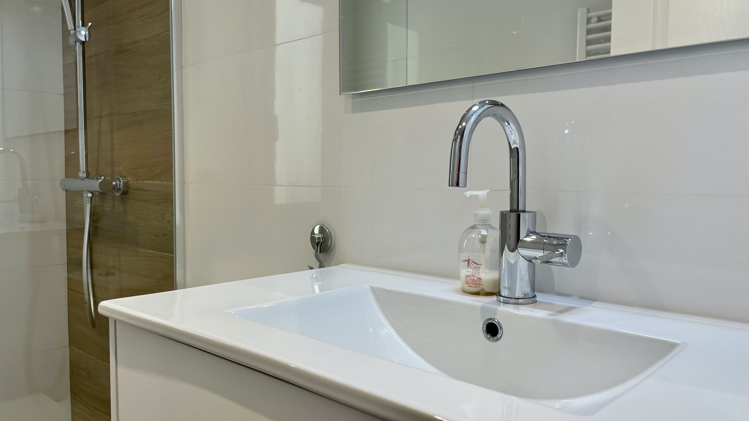 El interior se distingue por su diseño práctico, con 2 baños (ambos con ducha espaciosa de (lluvia)) y una cocina abierta completamente equipada. Entre los electrodomésticos se incluyen un refrigerador, congelador, lavavajillas, horno, hervidor de agua y máquina de café Nespresso. La vivienda también cuenta con wifi y una lavadora y plancha para su comodidad.