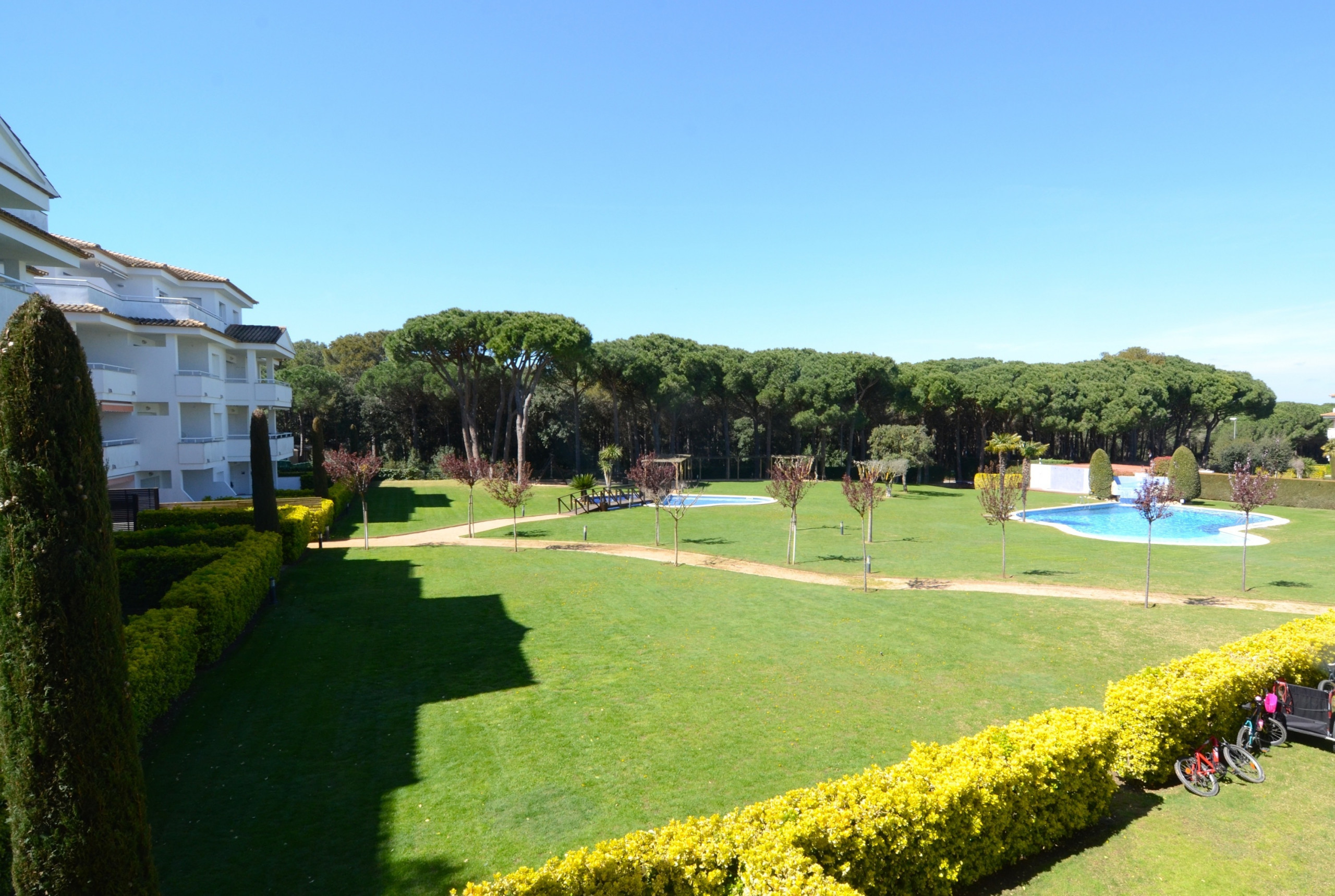 Dispone de ascensor, jardín, mobiliario jardín, plancha, balcón, piscina comunitaria+infantil, parking cubierto en edificio cercano, 1 Televisor.