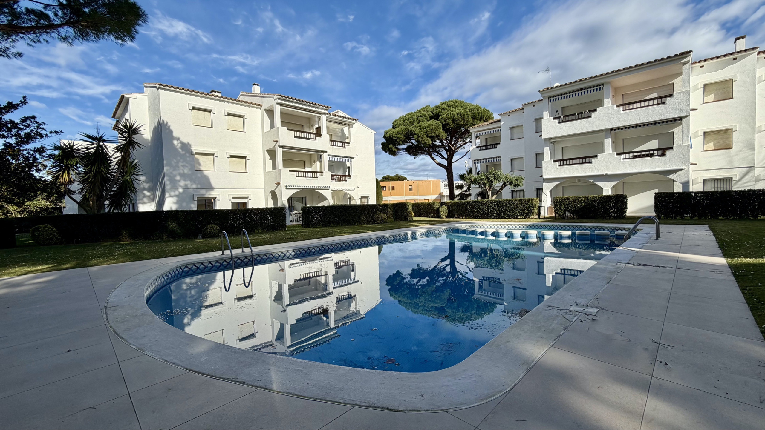 Dispone de jardín, mobiliario jardín, terraza, lavadora, plancha, acceso internet (wifi), piscina comunitaria, parking aire libre en mismo edificio, 1 Televisor.