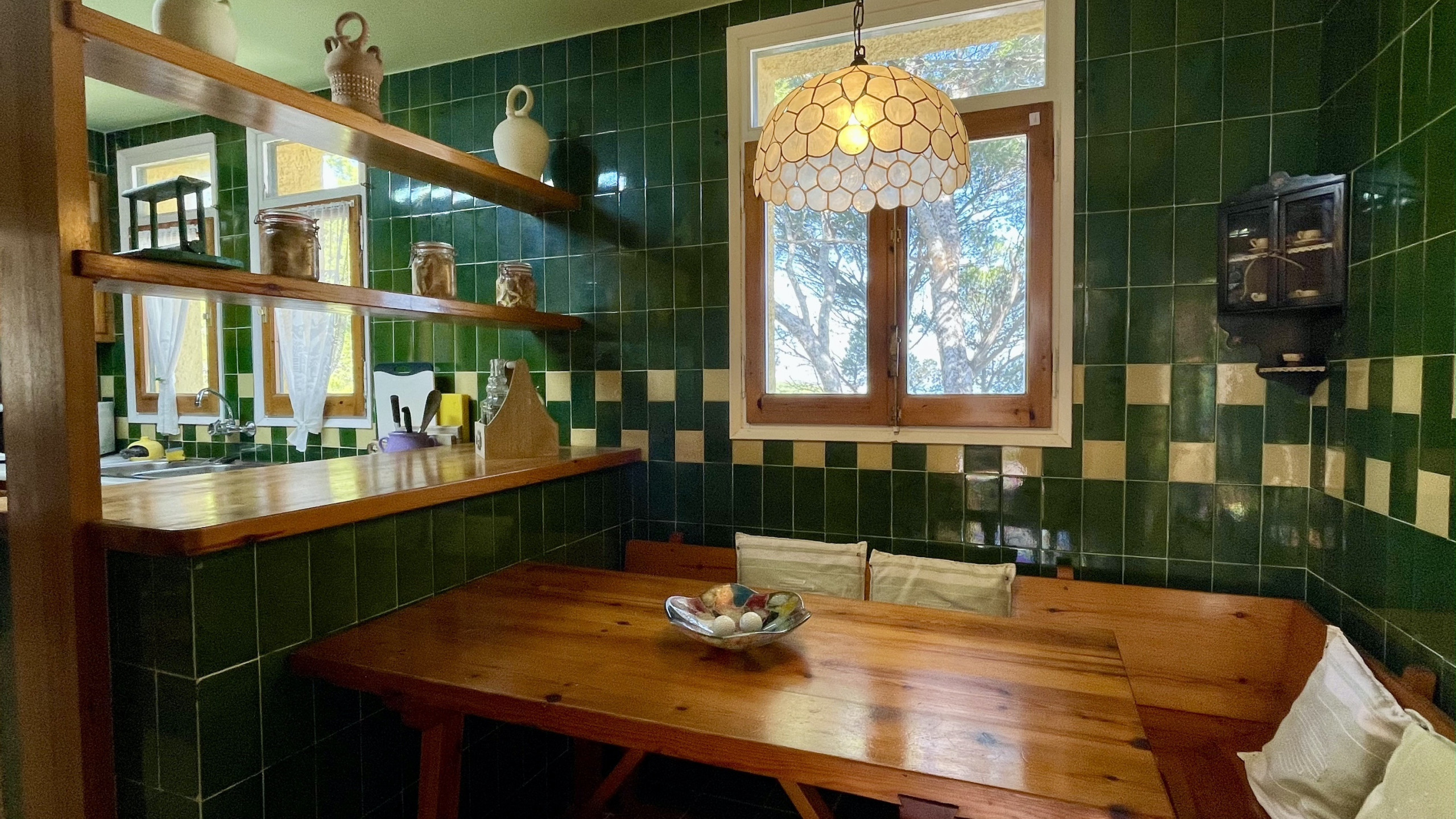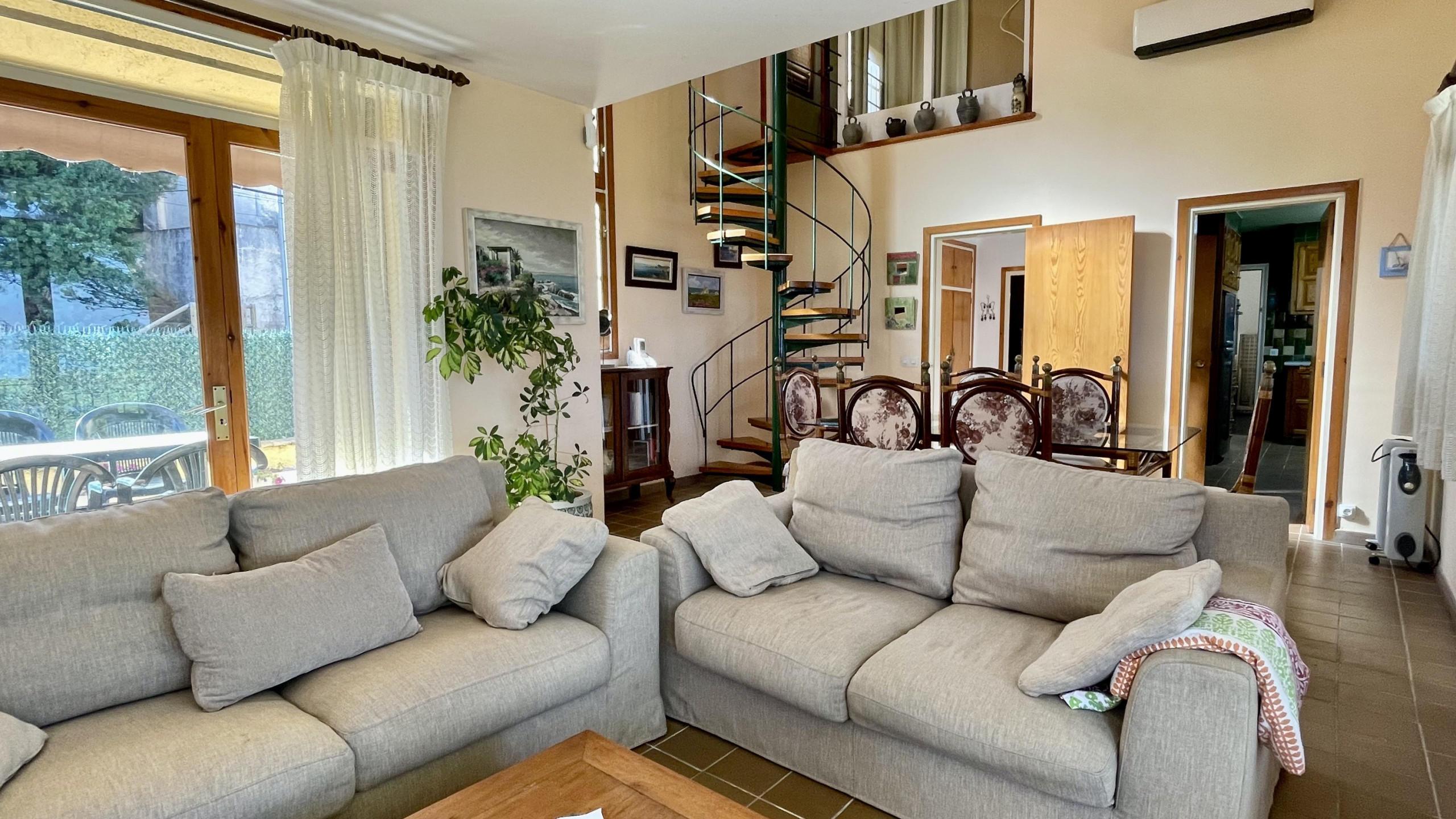 La casa combina a la perfección la autenticidad del estilo mediterráneo. El gran salón comedor, con acceso a dos terrazas, te ofrece un espacio acogedor para relajarte después de un día de exploración.