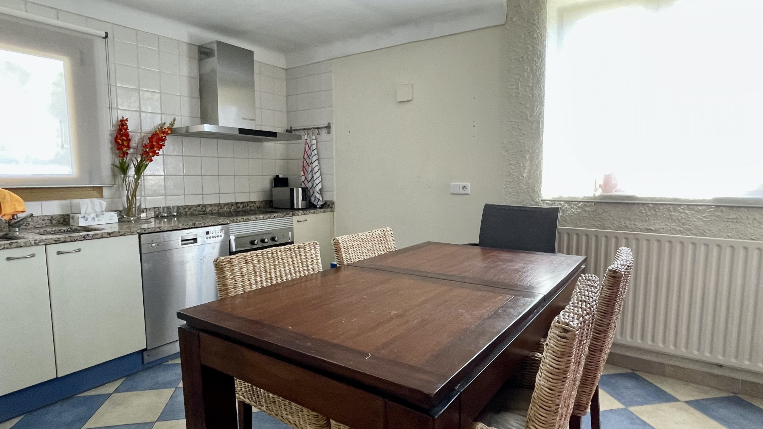 En la cocina, se proporcionan para su comodidad electrodomésticos esenciales como nevera, horno, congelador, lavadora, además de vajilla/cubertería, utensilios de cocina, cafetera y tostadora.