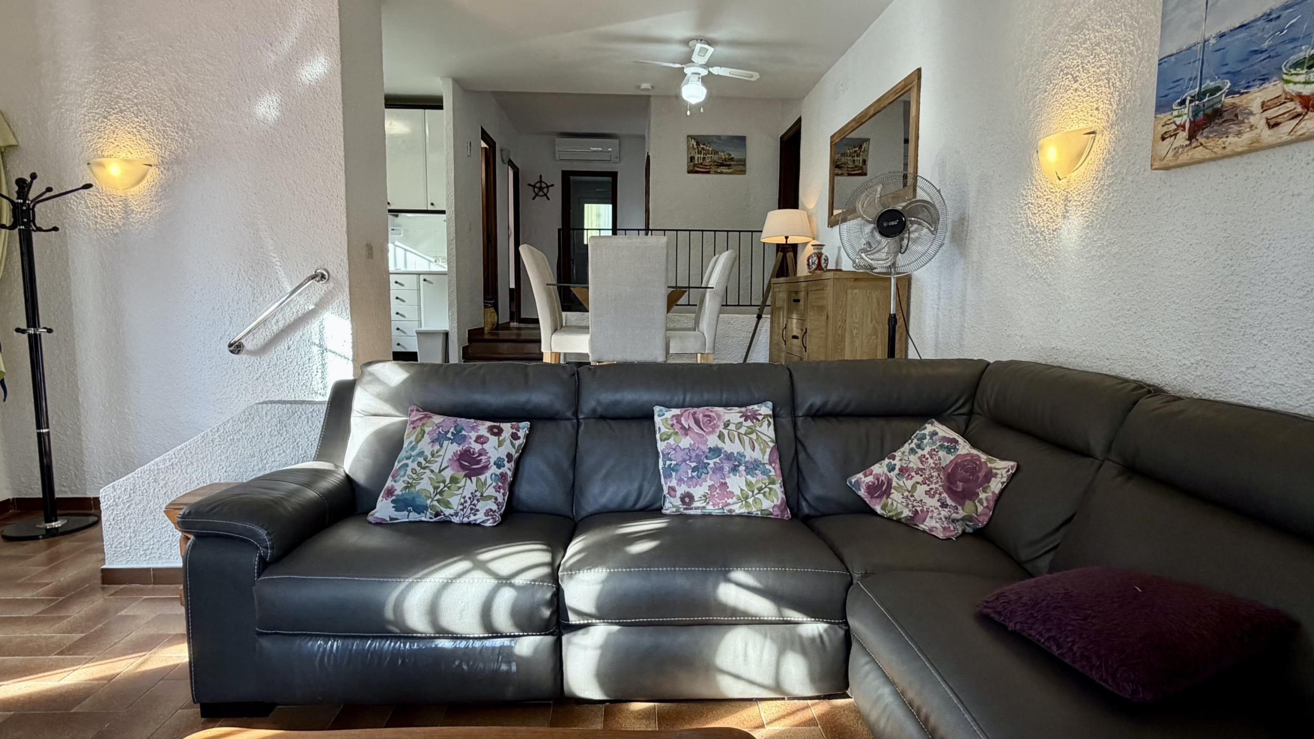 La urbanización cuenta con agradables zonas comunes y tres piscinas, ofreciendo opciones para relajarse y disfrutar del clima mediterráneo. Además, un amplio supermercado, equipado con pescadería y carnicería, se encuentra a tan solo 500 metros de distancia, brindando conveniencia para abastecerse de productos locales.