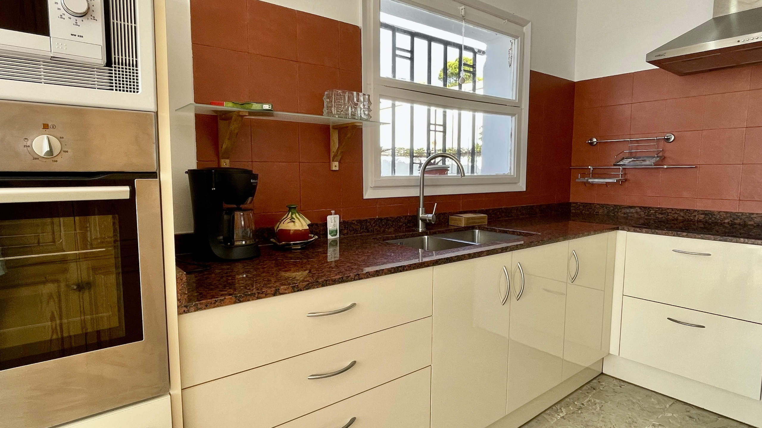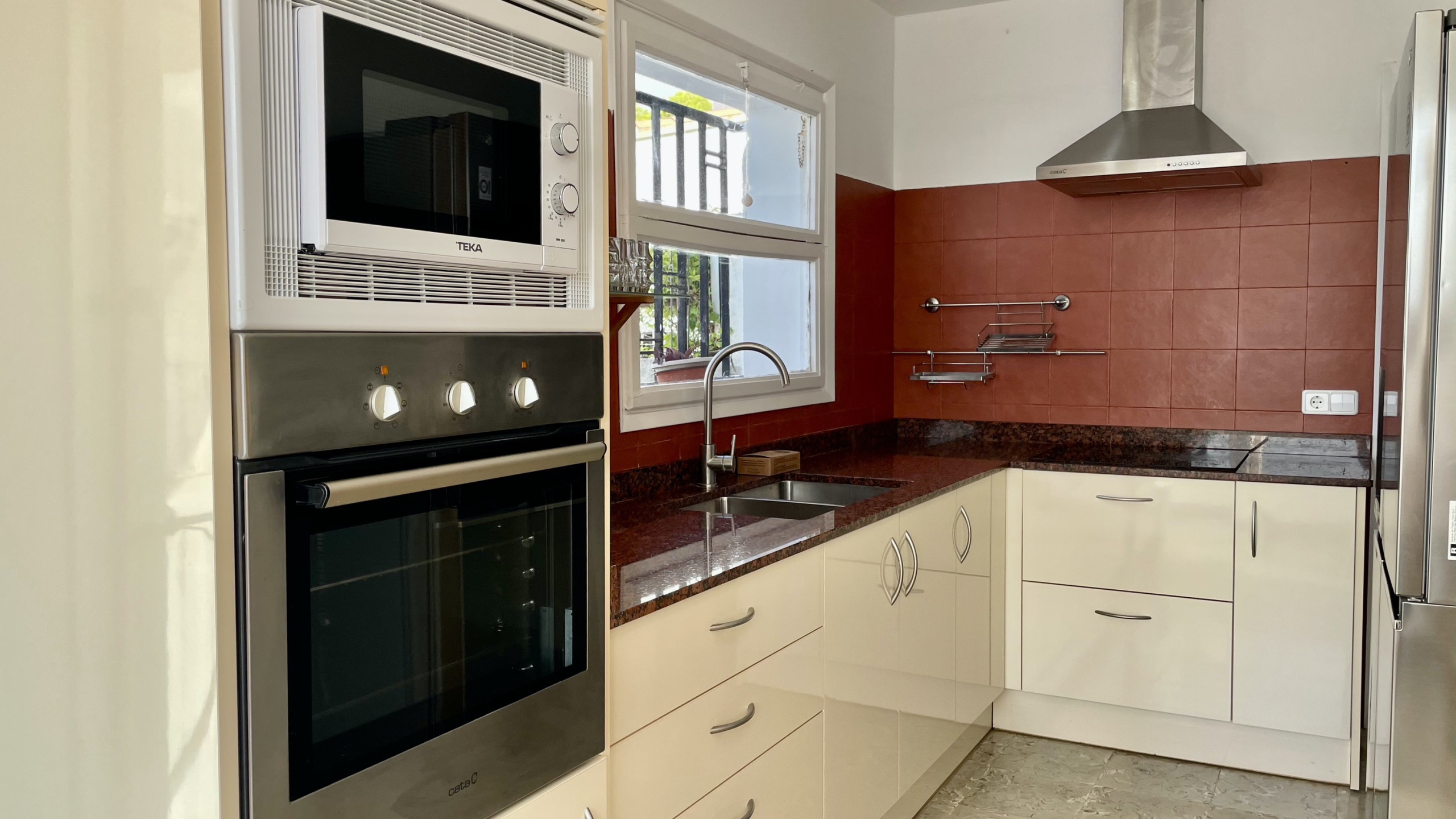 La urbanización cuenta con agradables zonas comunes y tres piscinas, ofreciendo opciones para relajarse y disfrutar del clima mediterráneo. Además, un amplio supermercado, equipado con pescadería y carnicería, se encuentra a tan solo 500 metros de distancia, brindando conveniencia para abastecerse de productos locales.