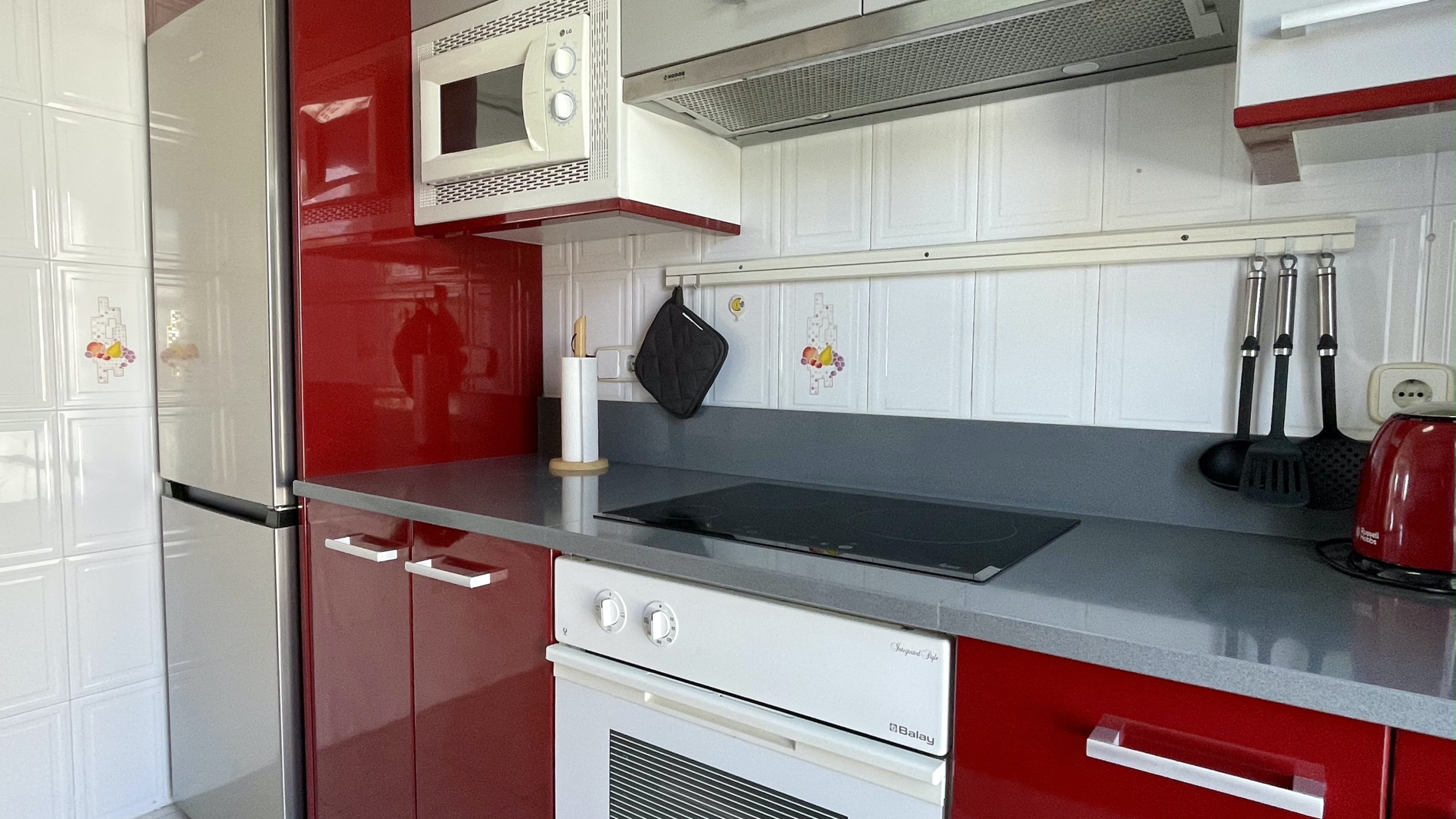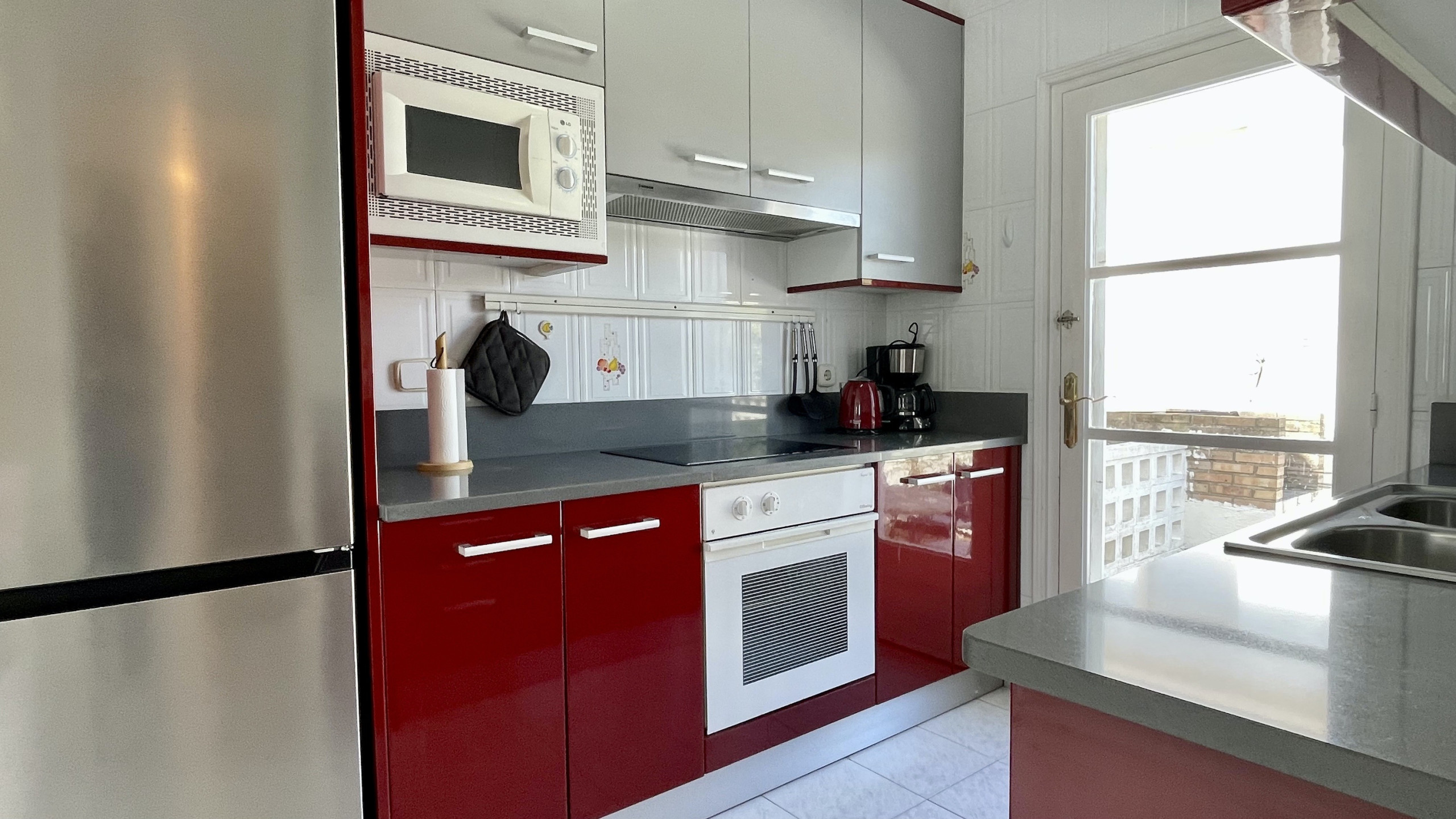 La cocina es completamente equipada e independiente, con electrodomésticos como nevera, congelador, lavadora, horno, microondas, cafetera, tostadora y menaje completo. Perfecto para preparar comidas y disfrutar de momentos gastronómicos en familia.