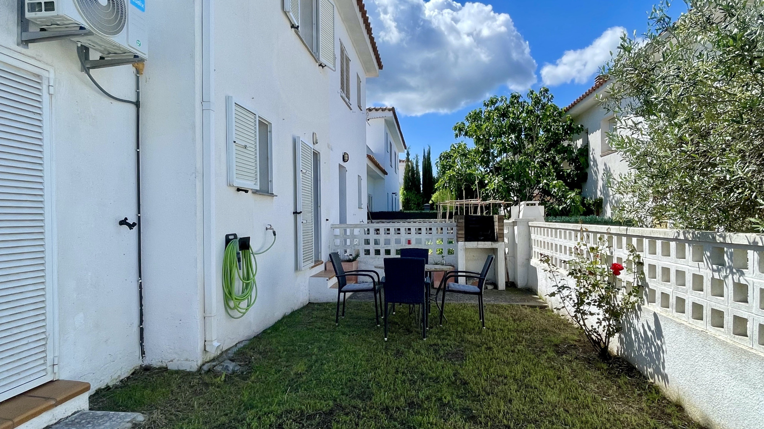 Entre sus características destacan una terraza con muebles de jardín y barbacoa, además de un jardín cercado que ofrece privacidad. El apartamento permite mascotas (máximo 2).
