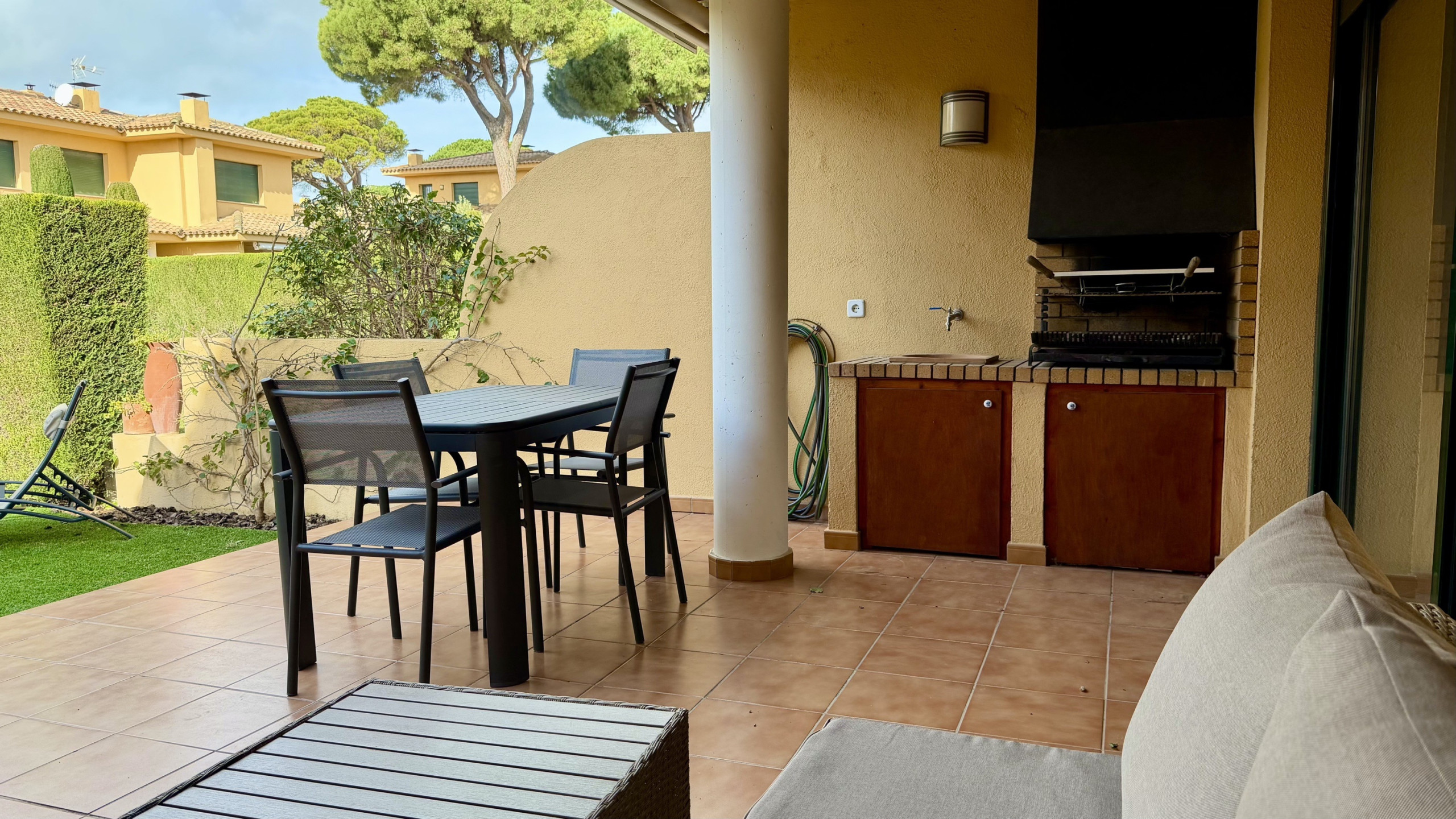 - Terraza y jardín privado amueblado.