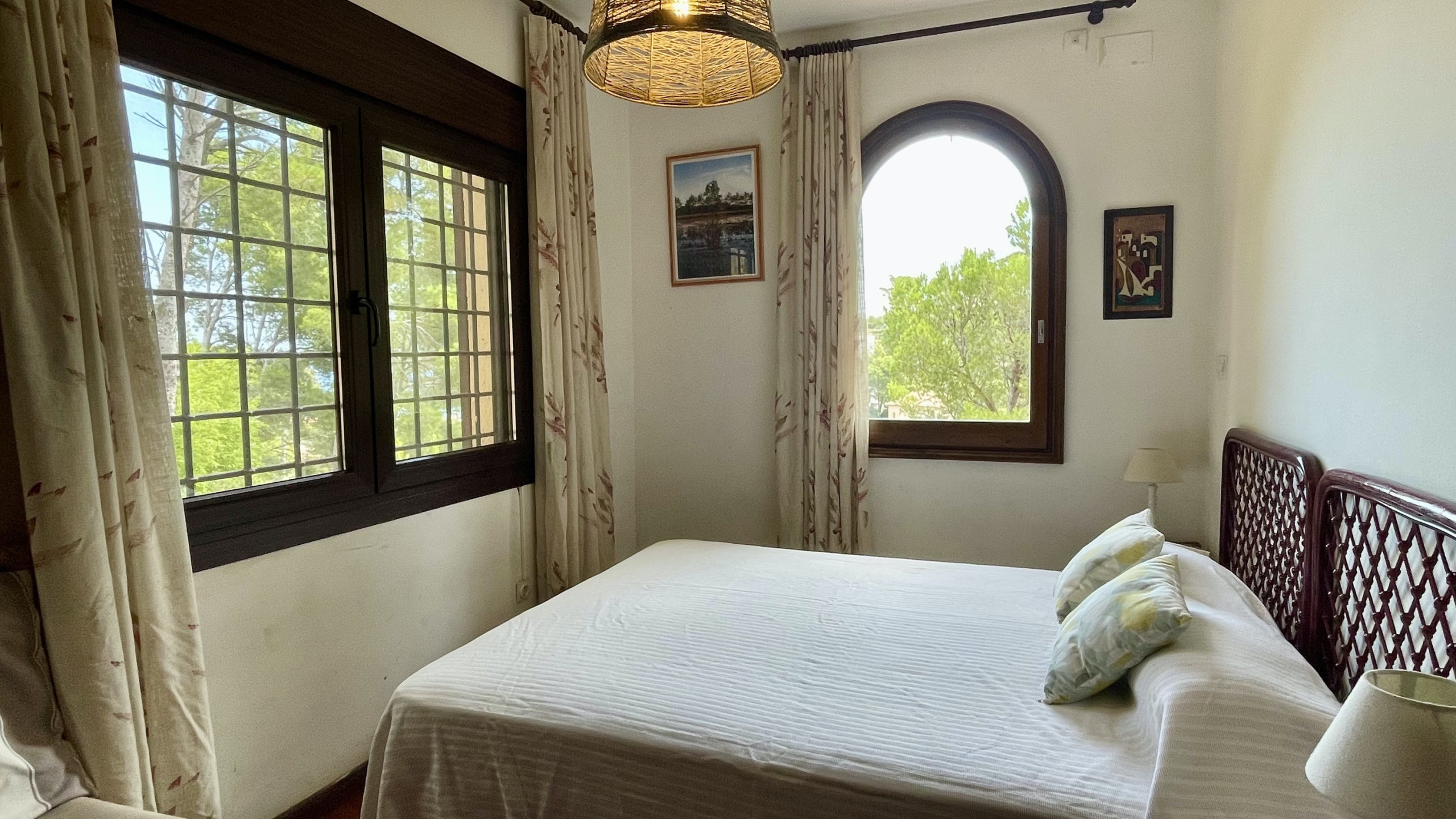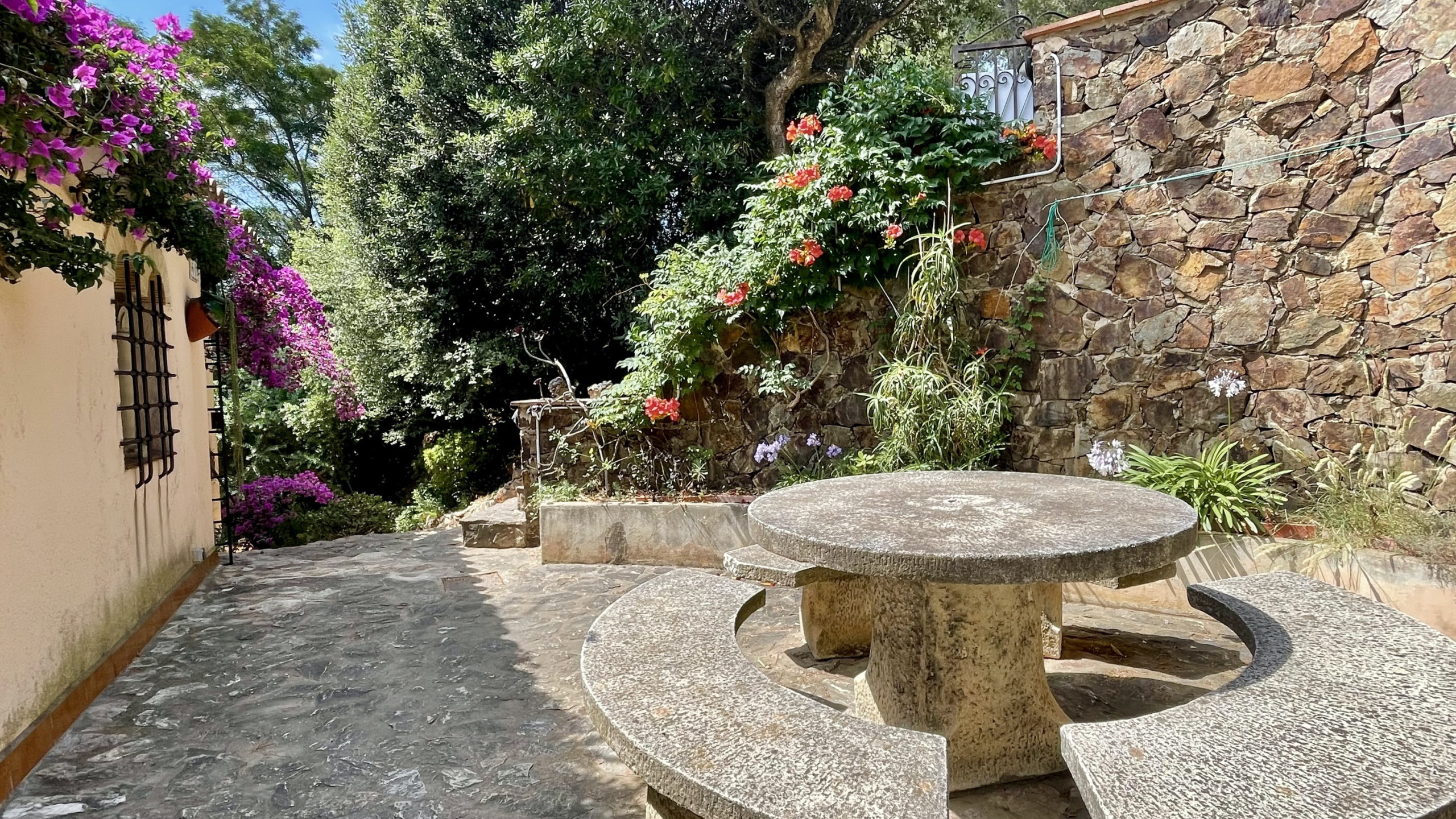 La casa dispone de un hermoso jardín mediterráneo con flores, perfecto para relajarse y disfrutar de la naturaleza. También cuenta con mobiliario de jardín para comidas al aire libre y momentos de ocio, una chimenea para noches acogedoras y un televisor para tu entretenimiento. La cocina americana, totalmente equipada con vitrocerámica, nevera, microondas, horno, congelador, lavadora, vajilla y cubertería, utensilios de cocina, cafetera y tostadora, te permitirá preparar tus comidas favoritas.