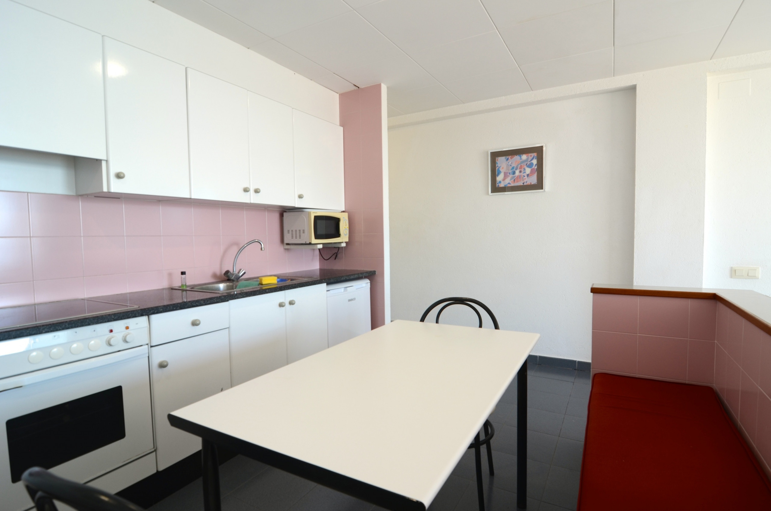 El estudio está cuidadosamente equipado con acceso por ascensor, terraza con muebles, piscina comunitaria + infantil rodeada de un jardín verde y TV.