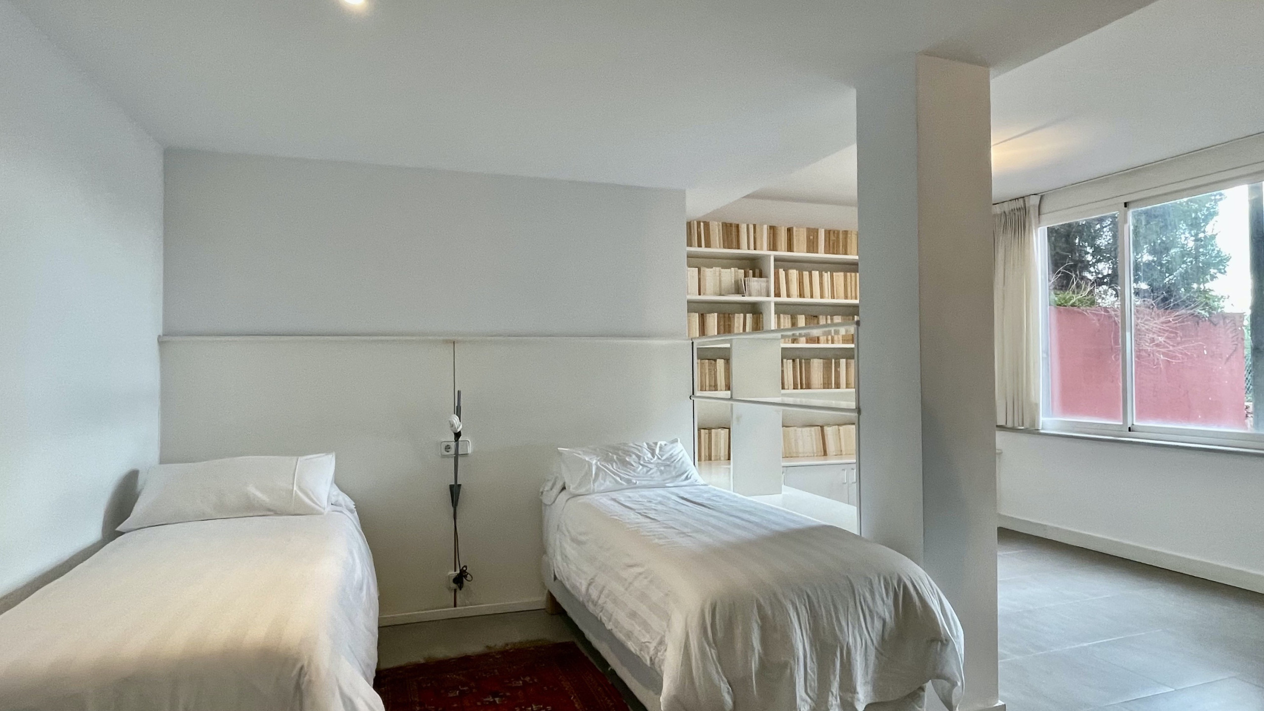 Dispone de tres habitaciones dobles elegantemente decoradas, tres baños completos y un gimnasio privado. Además, la casa incluye un garaje con capacidad para tres coches, asegurando comodidad y seguridad durante la estancia.