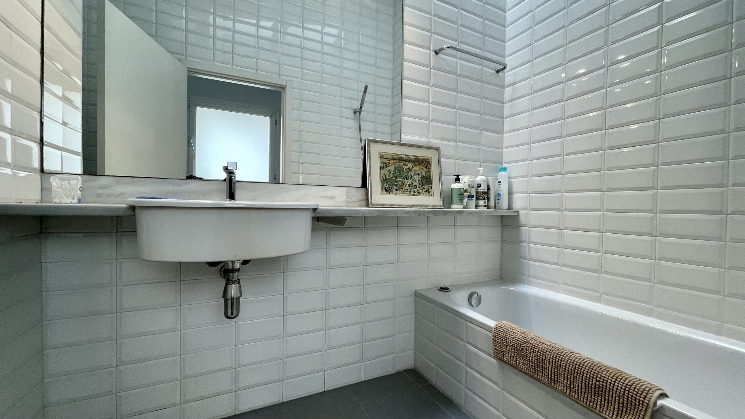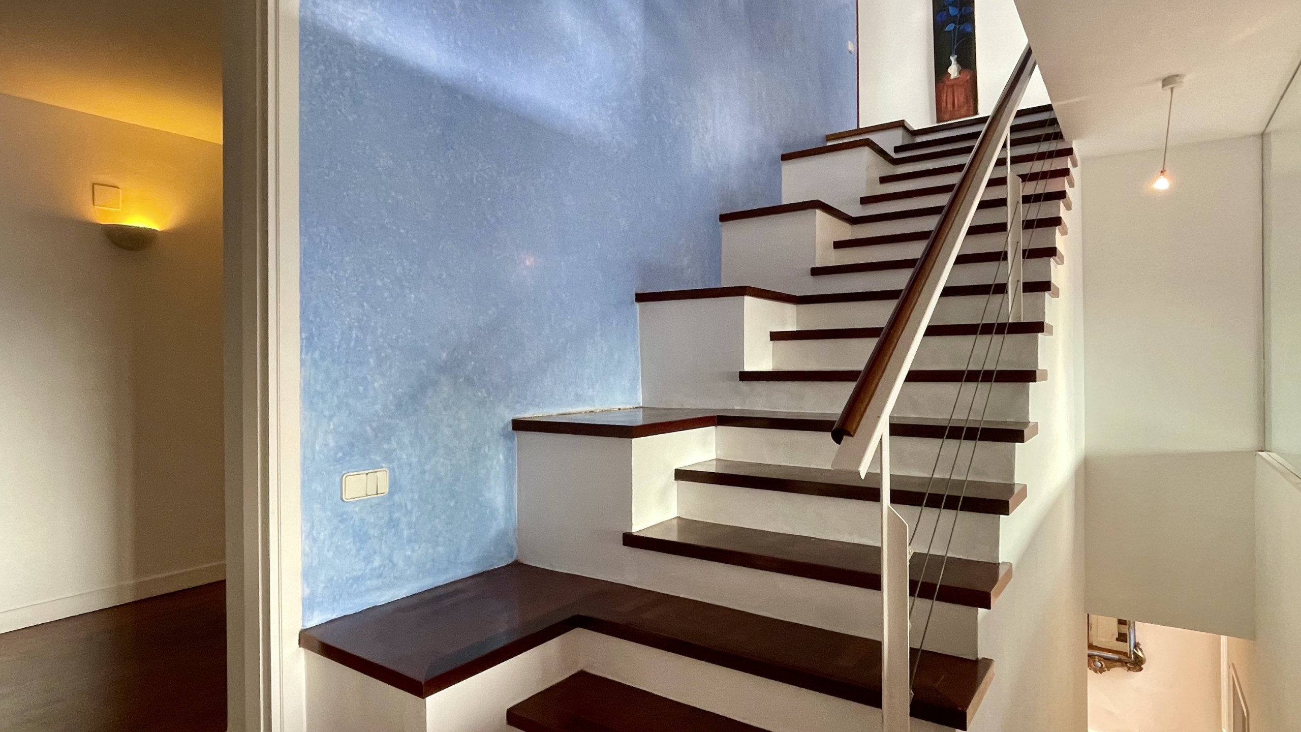 Arriba, descubrirá 3 dormitorios, un baño con bañera y una terraza que ofrece impresionantes vistas al mar al fondo.