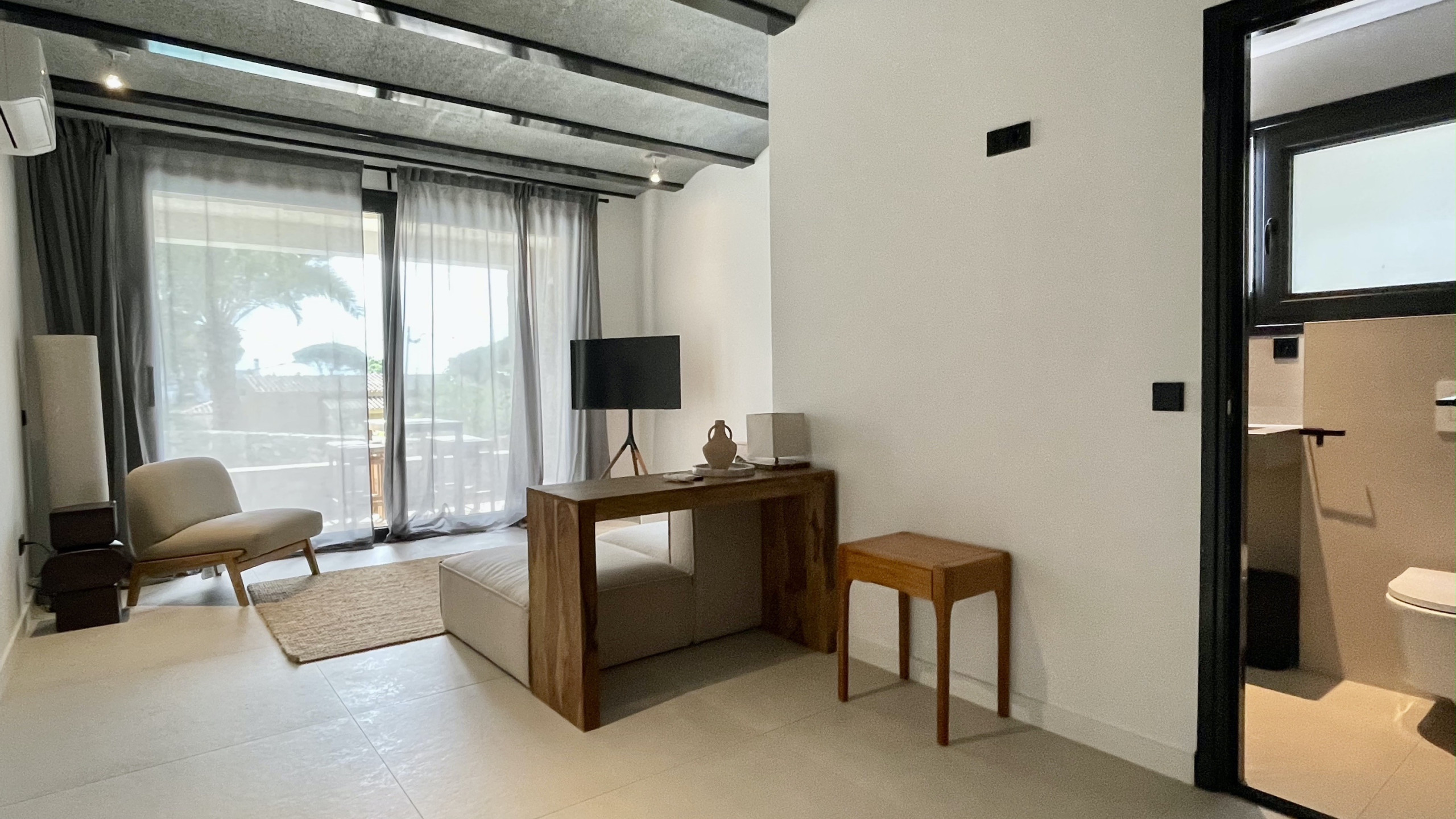 Acogedora sala de estar con acceso directo a la piscina