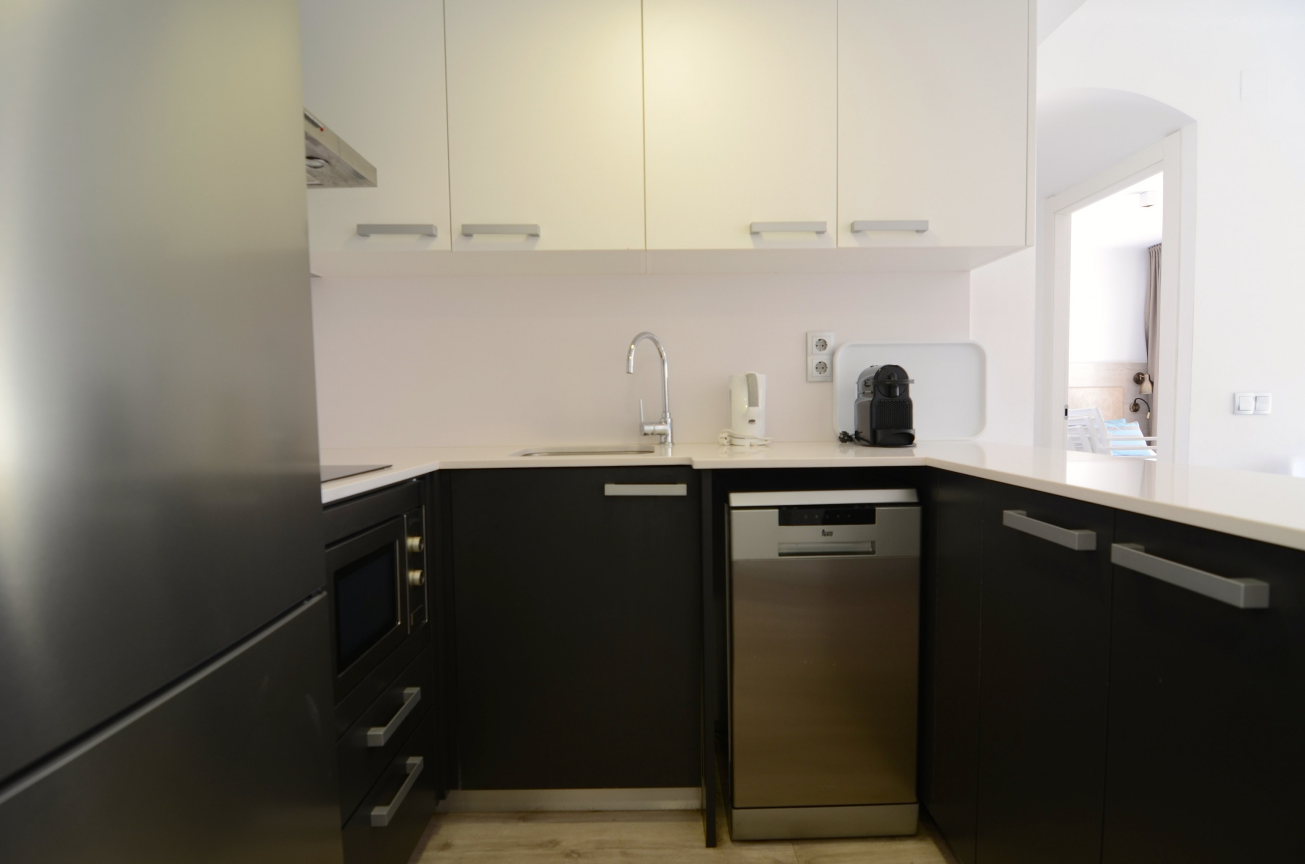 La cuina americana, equipada amb sistema de cocció de vitroceràmica, està totalment equipada amb els electrodomèstics essencials, com ara nevera, microones, congelador, rentadora, rentavaixelles, a més de vaixella, coberts, estris de cuina, cafetera i torradora. Les llençols estan inclosos en el preu, i es poden afegir tovalloles per 5€/persona.