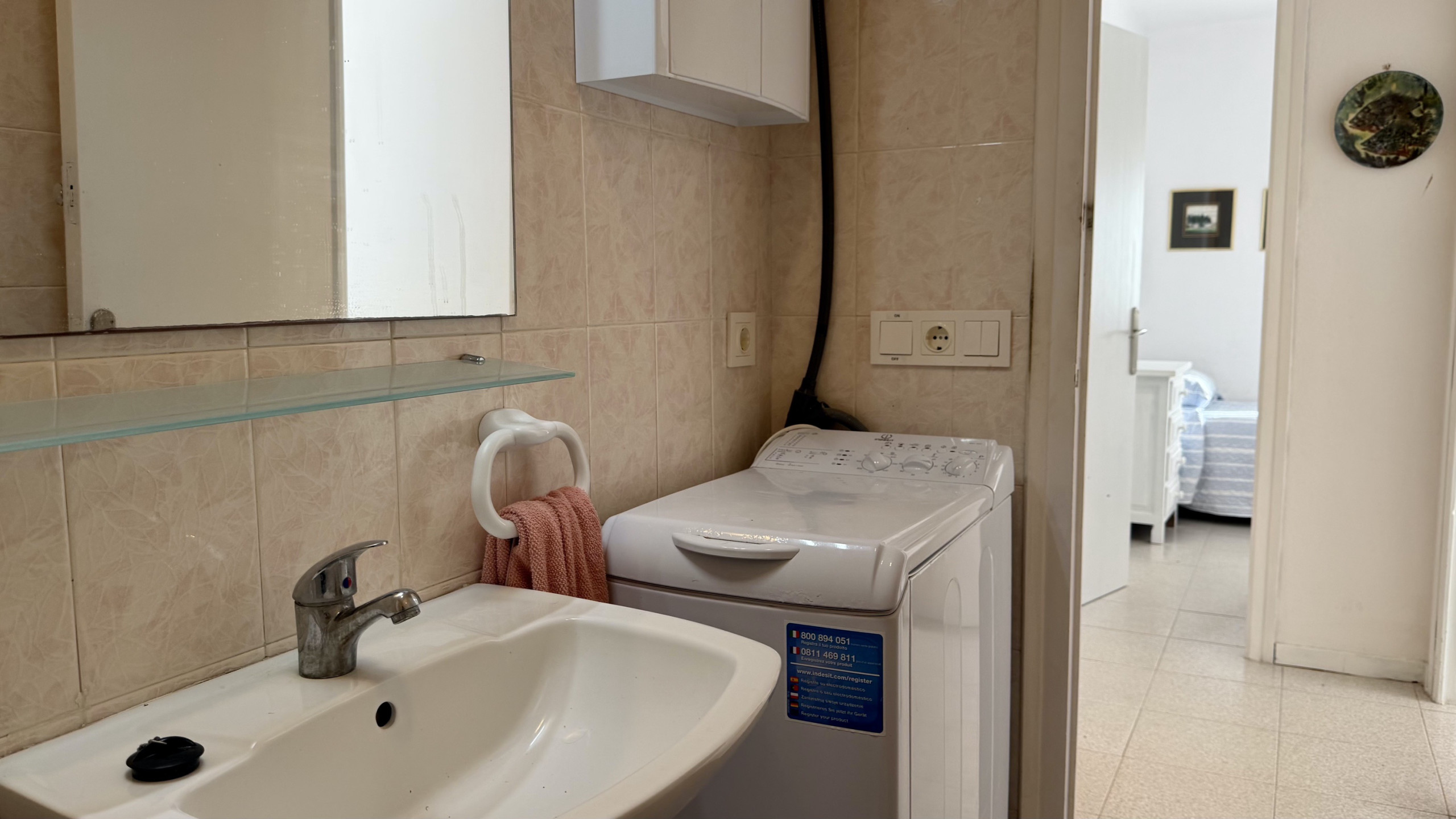 L'apartament compta amb 3 dormitoris ben distribuïts: un dormitori amb llit de matrimoni i dos dormitoris amb llits individuals, garantint un descans còmode per a tots els hostes. Disposa d'un complet bany amb banyera, perfecte per relaxar-se després d'un dia de platja.