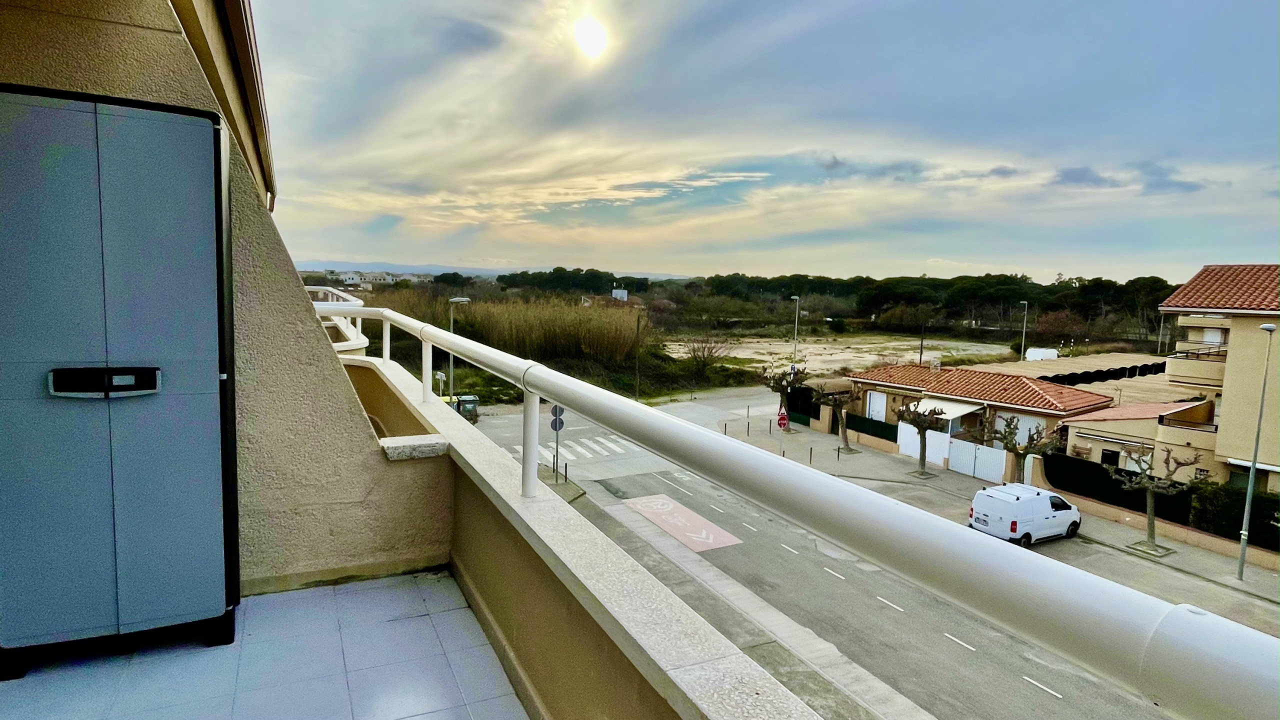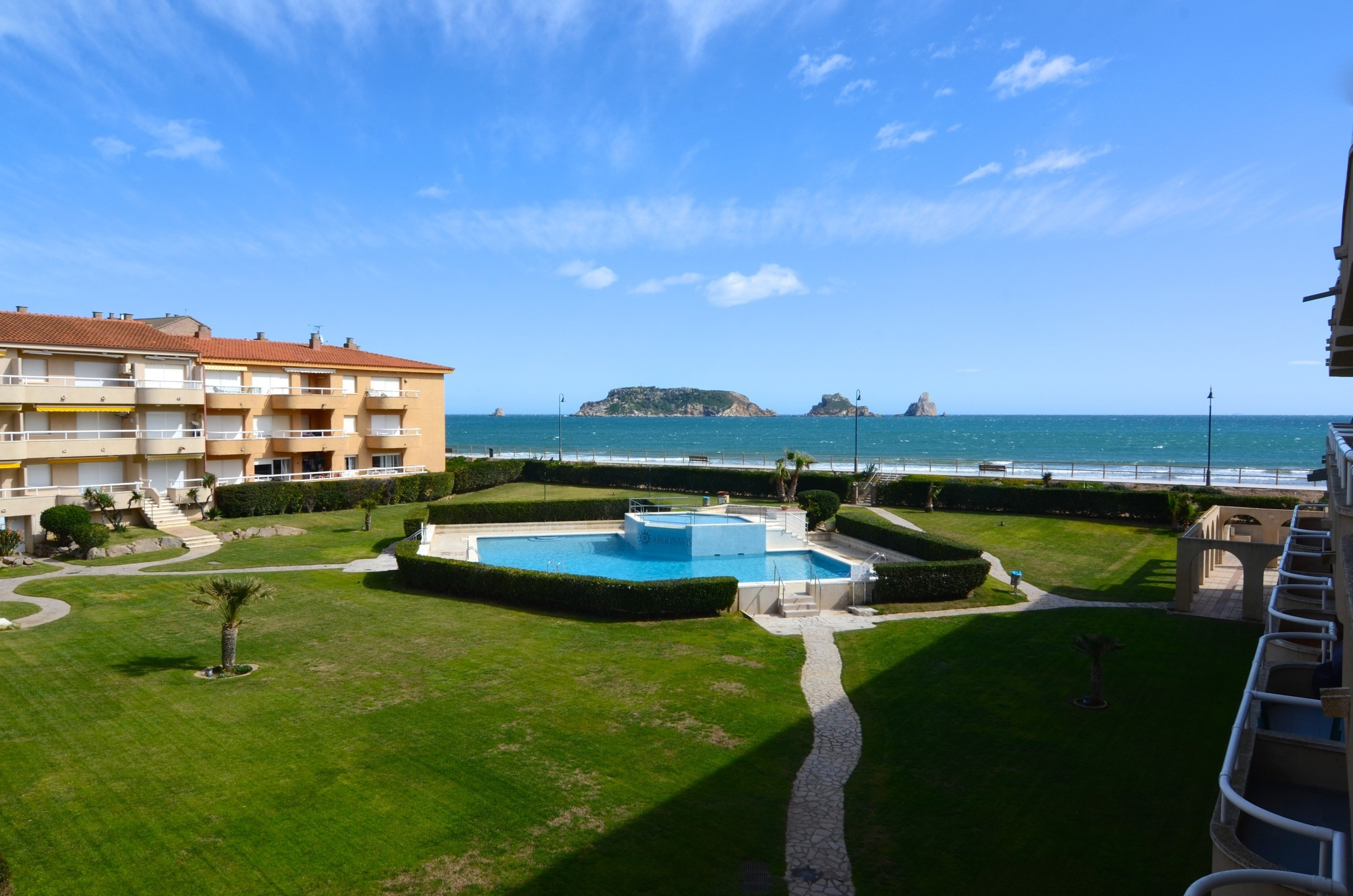 L'apartament té una gran terrassa amb una vista immillorable de tot el complex Rocamaura, amb la piscina als teus peus i les Illes Medes de fons.