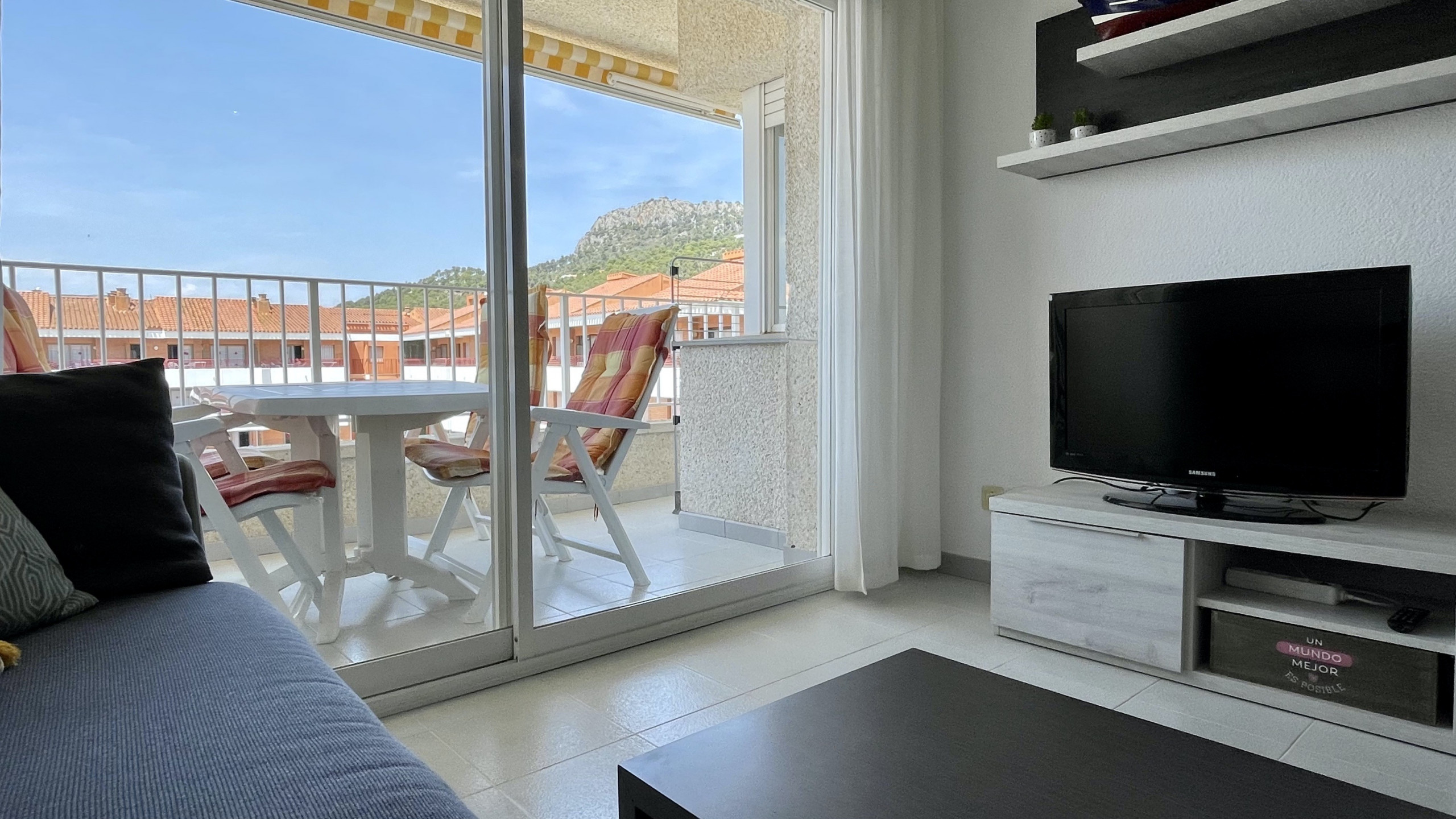 L'apartament té una gran terrassa amb una vista immillorable de tot el complex Rocamaura, amb la piscina als teus peus i les Illes Medes de fons.