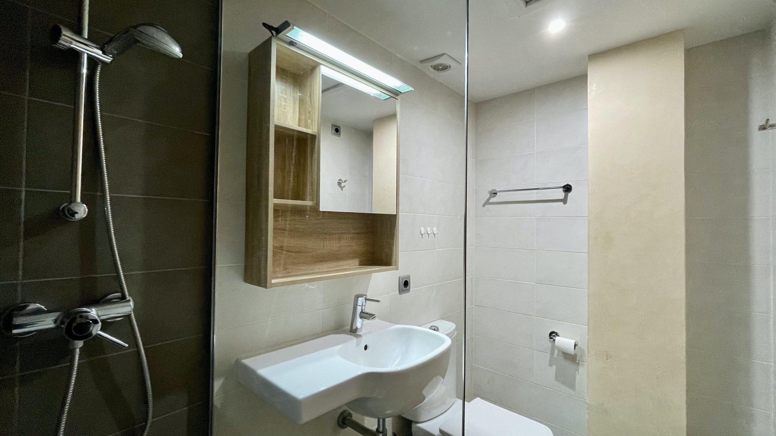 L'apartament disposa de piscina compartida, ideal perquè els nens juguin i els adults es relaxin. Compta amb dos banys, un amb dutxa i un altre amb banyera, facilitant la rutina familiar.