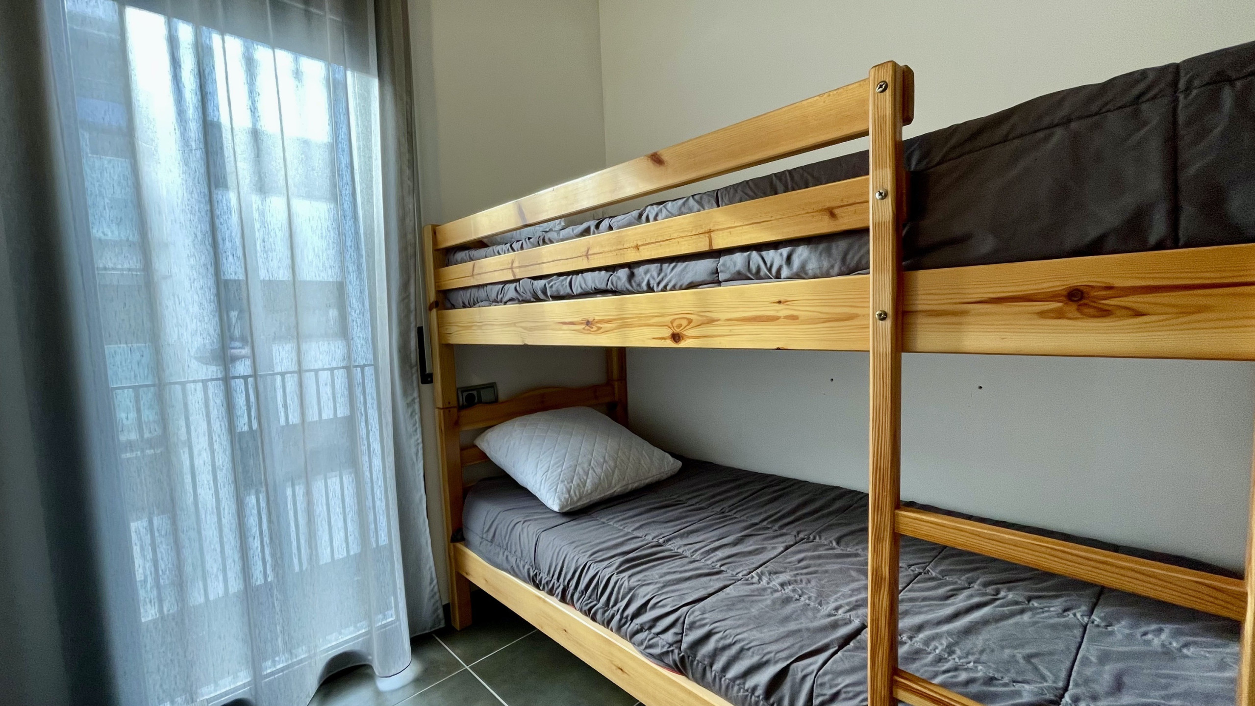 L'apartament disposa de dues habitacions que poden allotjar còmodament fins a 5 persones, oferint una distribució ideal per a famílies. Disposeu d'un llit de matrimoni principal, un llit individual i un sofà llit, garantint un descans relaxant per a tots els membres de la família.