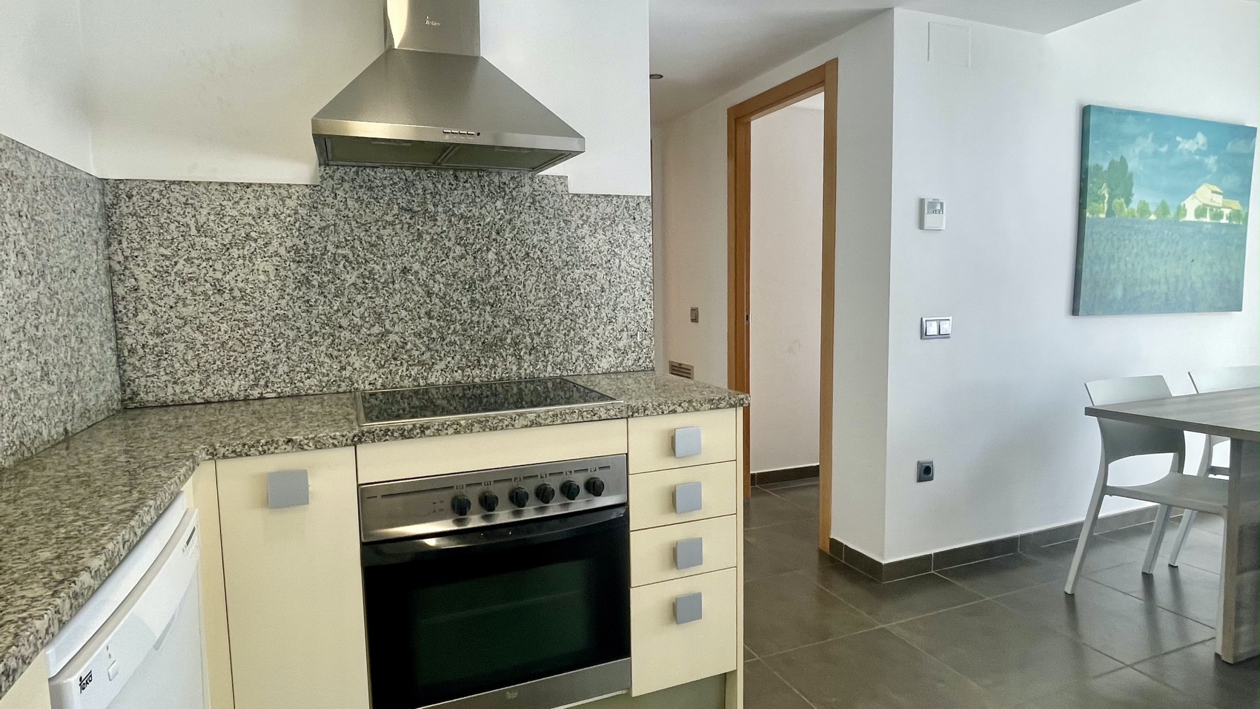 L'apartament es distribueix en dues plantes i compta amb tres dormitoris còmodes i funcionals, així com dos banys complets que aporten comoditat a grups més grans. Els espais són amplis i ben aprofitats, amb una decoració senzilla i pràctica que convida al descans. La cuina està equipada amb tot el necessari per gaudir d'estades llargues o curtes.