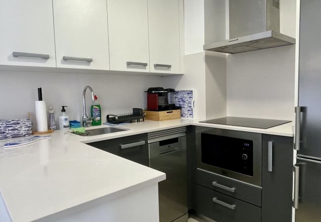 L'apartament disposa de dues habitacions ben distribuïdes, que inclouen un llit de matrimoni i quatre llits individuals, garantint un descans còmode per a tots els hostes. La zona d'estar integrada amb la cuina americana permet una convivència fluida i agradable.