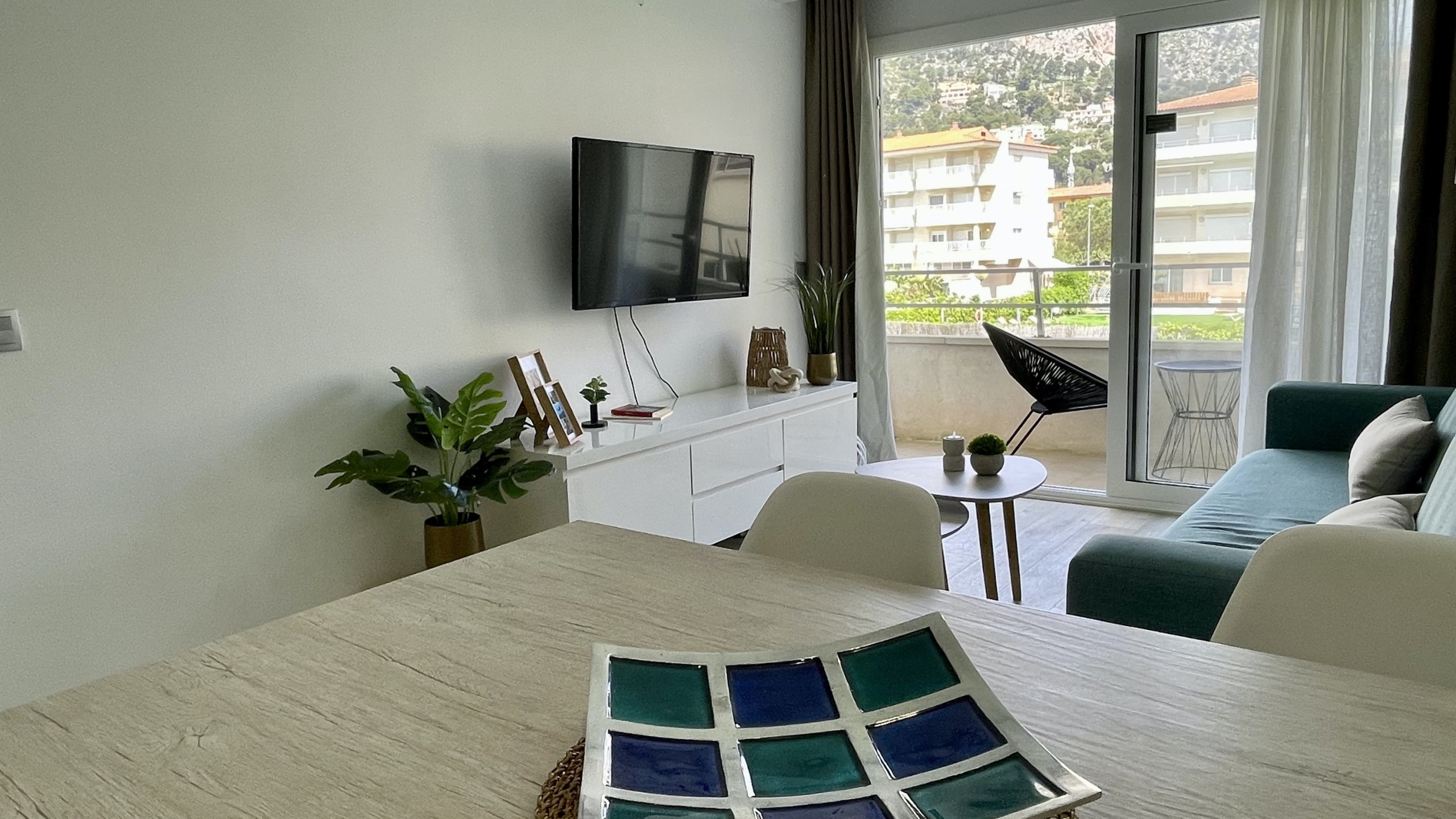L'apartament té una gran terrassa amb una vista immillorable de tot el complex Rocamaura, amb la piscina als teus peus i les Illes Medes de fons.