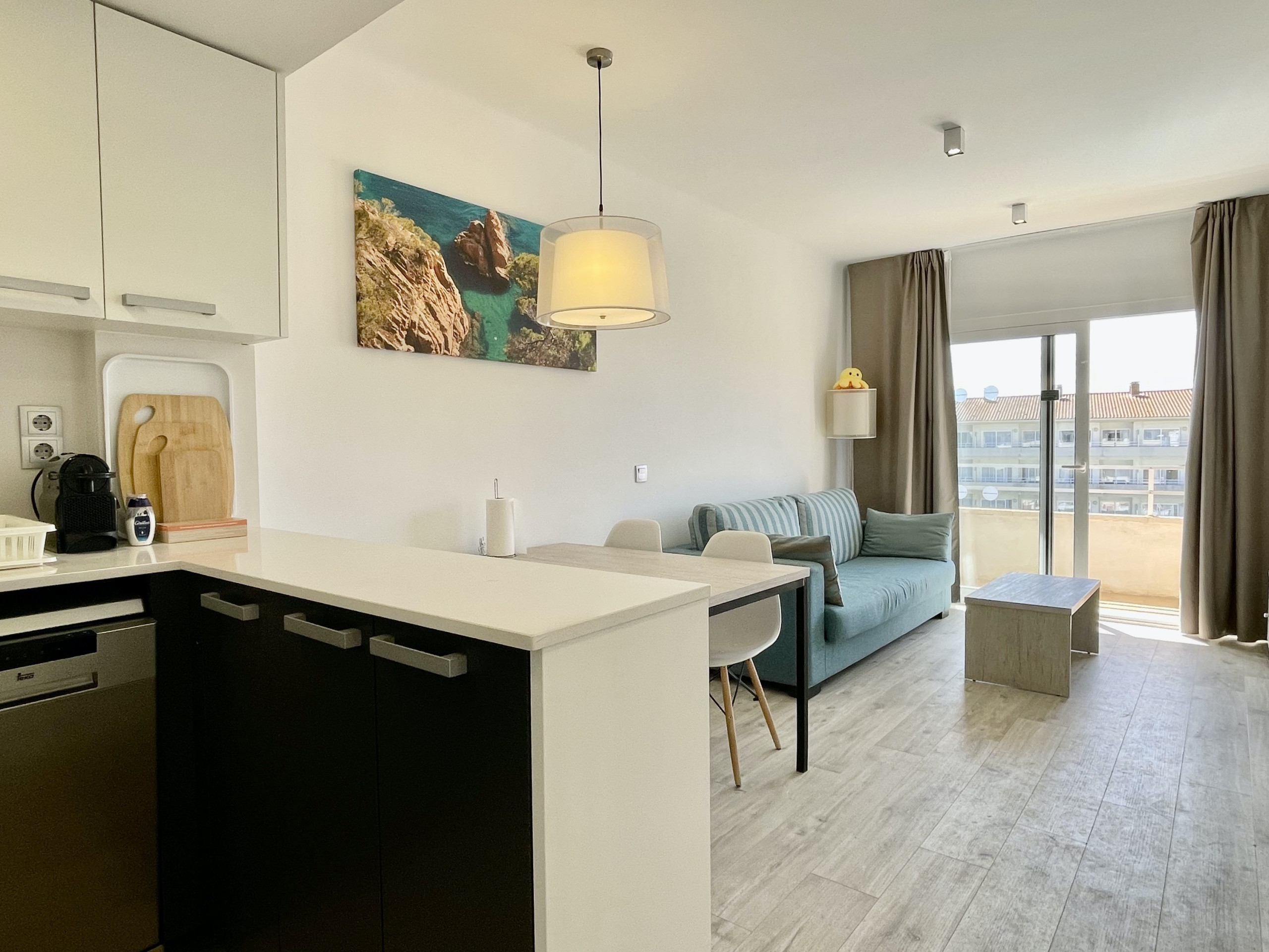 La cuina americana, equipada amb sistema de cocció de vitroceràmica, està completament equipada amb els electrodomèstics essencials, com ara nevera, microones, congelador, rentadora, rentavaixelles, a més de vaixella, coberts, estris de cuina, cafetera i torradora. Les llençols estan incloses en el preu, i es poden afegir tovalloles per 5€/persona.
