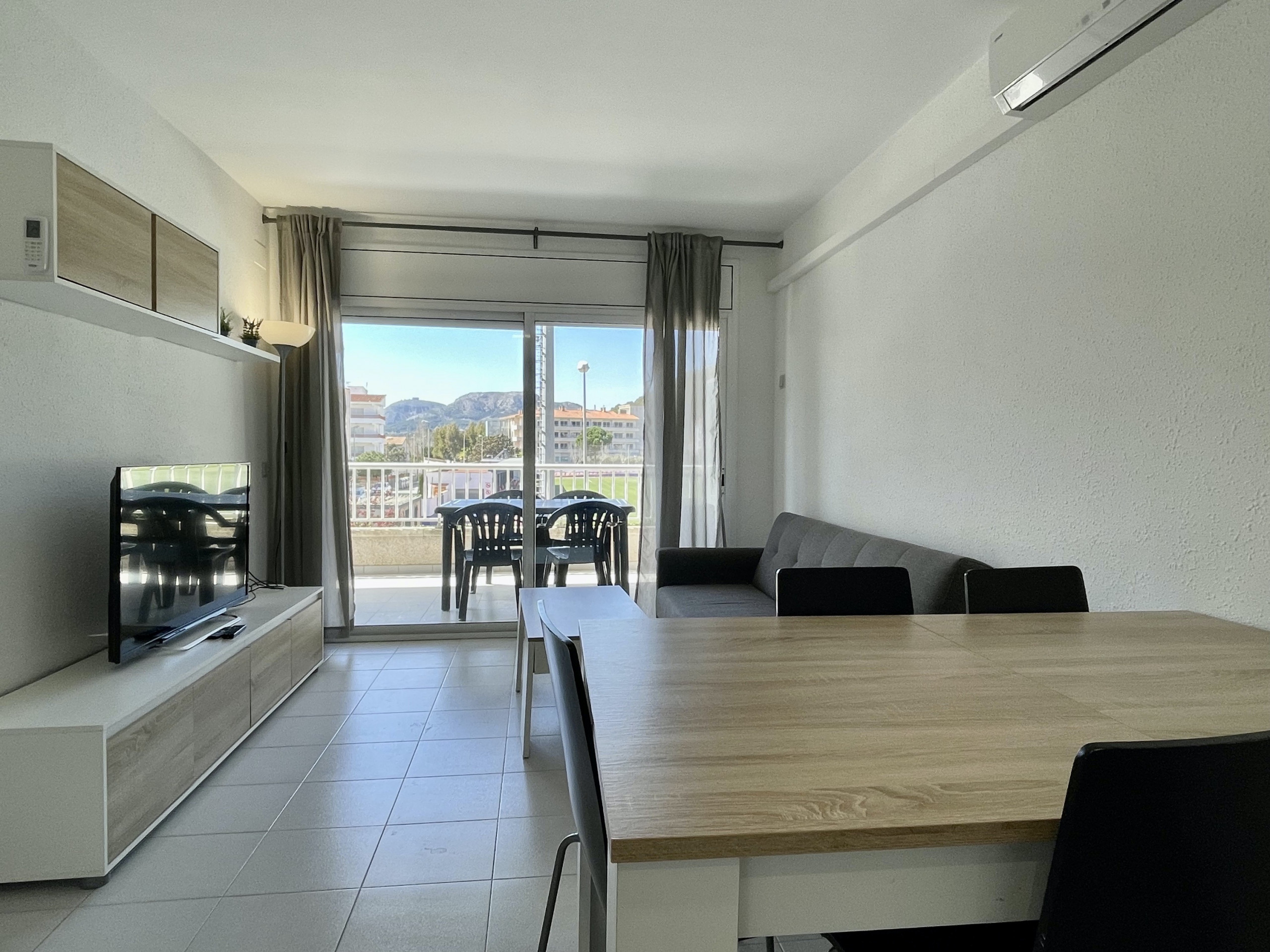 Apartament moblat recentment en estil modern. Té una cuina oberta al saló, terrassa amb vistes al camp de futbol, 3 habitacions i 2 banys. A més disposa d'aire condicionat al saló.