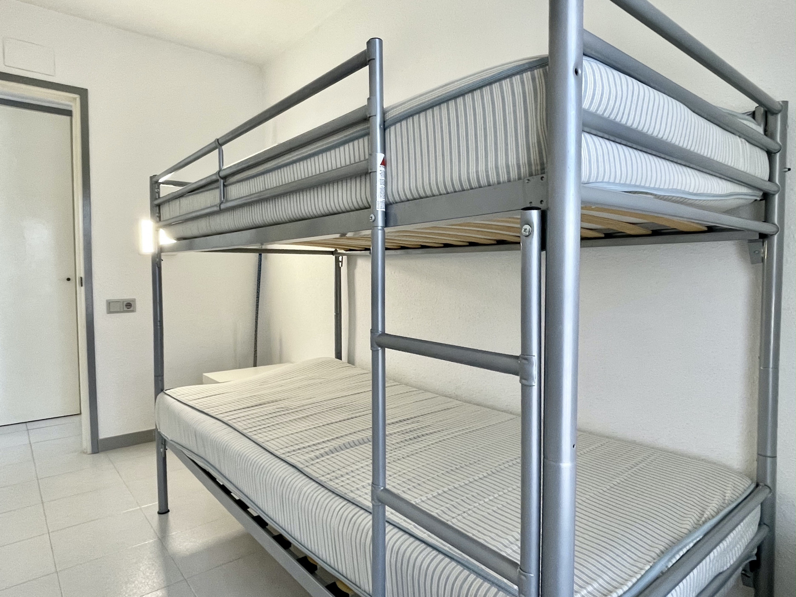 Aquest encantador apartament de lloguer vacacional a Estartit ofereix una estada còmoda per a fins a 5 persones en els seus 2 dormitoris (1 amb lliteres). Amb una superfície de 44 m², l'allotjament és elegant i està estratègicament situat en primera línia de platja, amb vistes impressionants a la piscina.